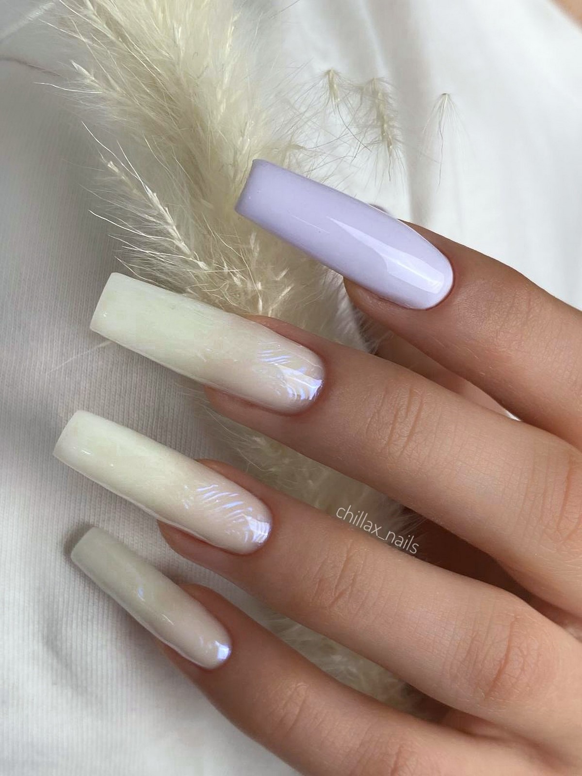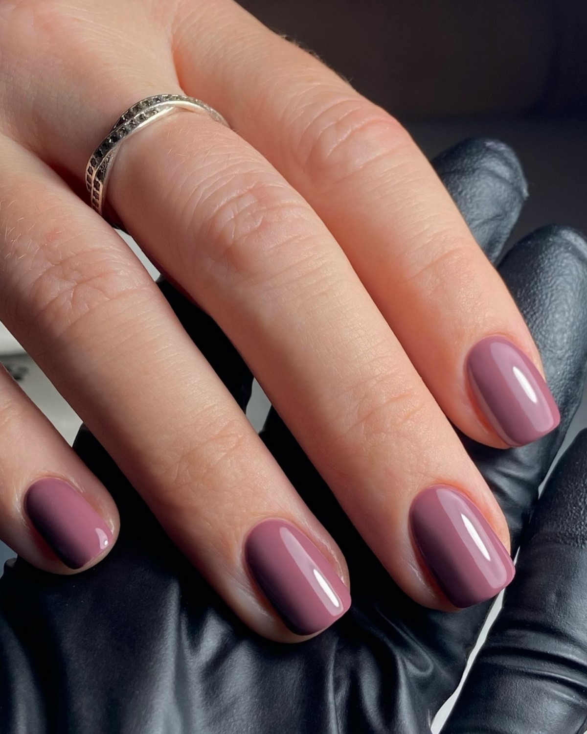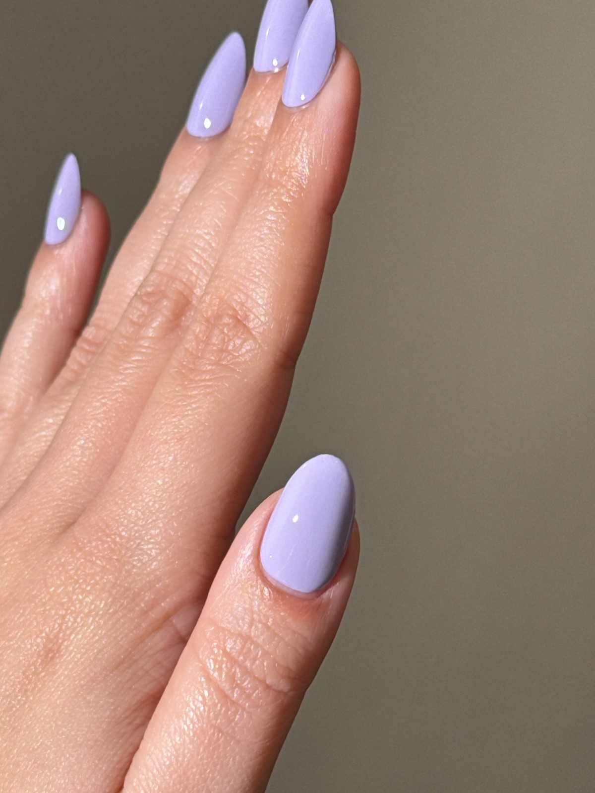 Этот оттенок становится одним из самых модных в 2026 году. Полупрозрачная лавандово-серая база выглядит воздушно и очень стильно. Она идеально подчеркивает натуральную красоту ногтей и создает эффект чистоты.