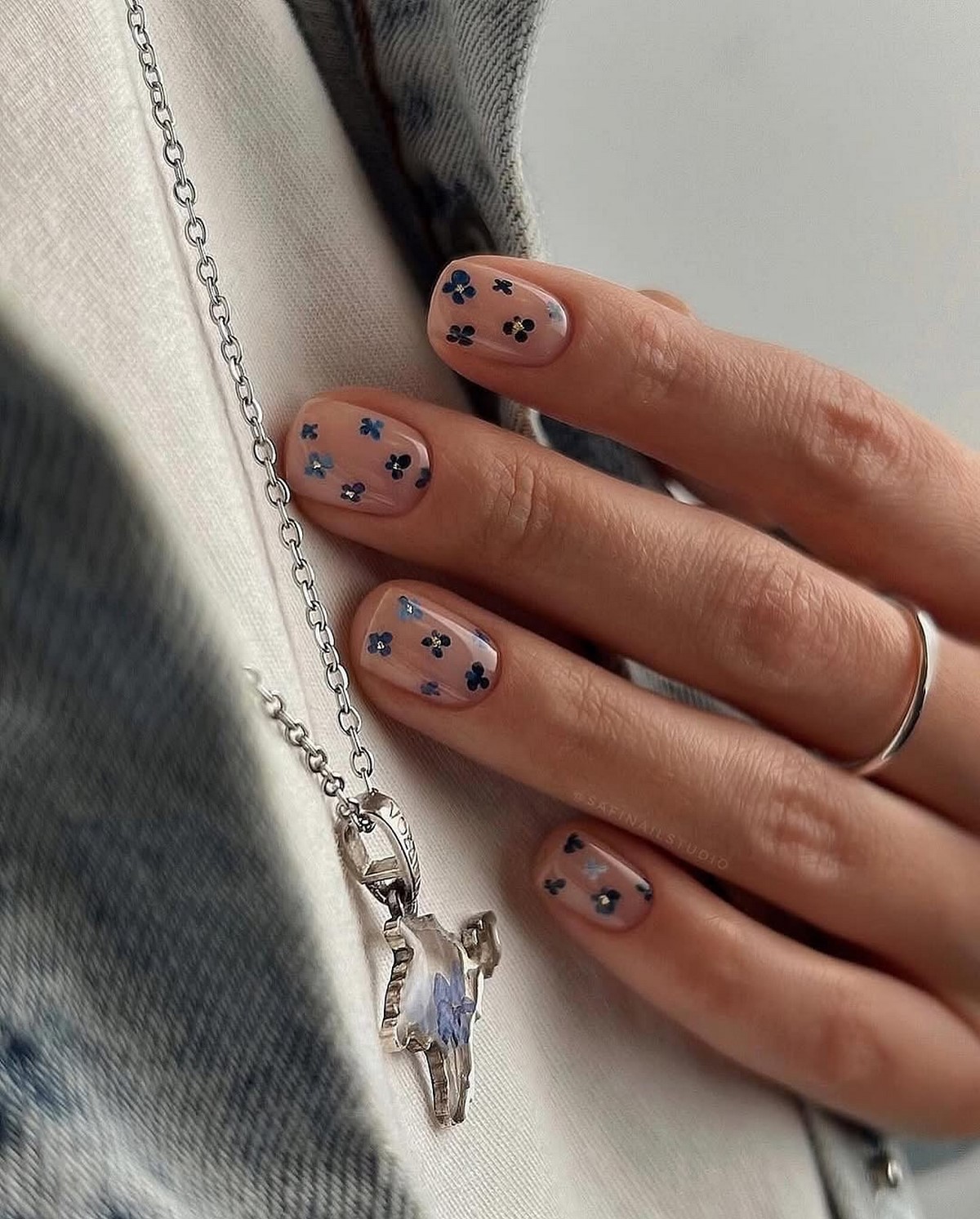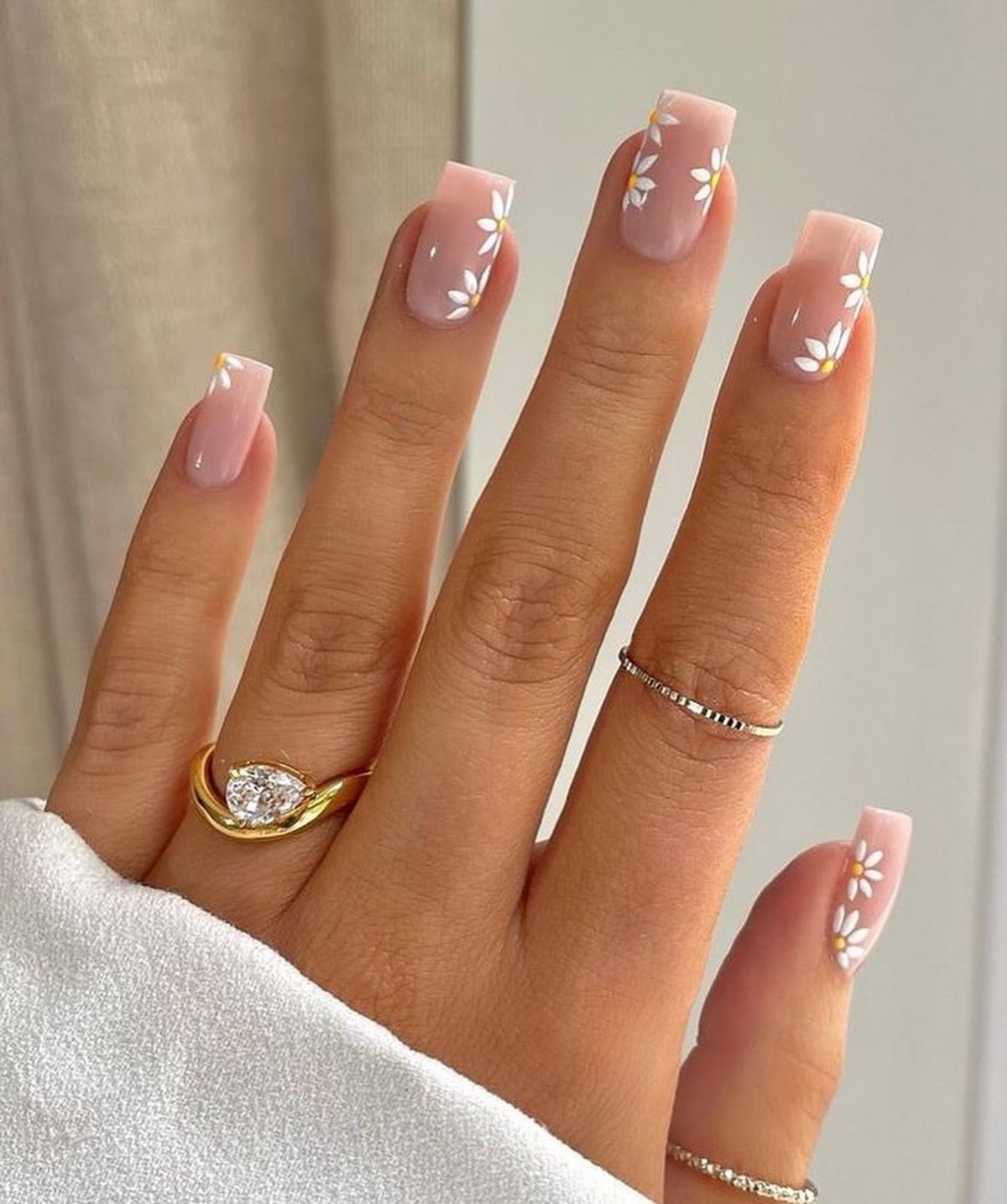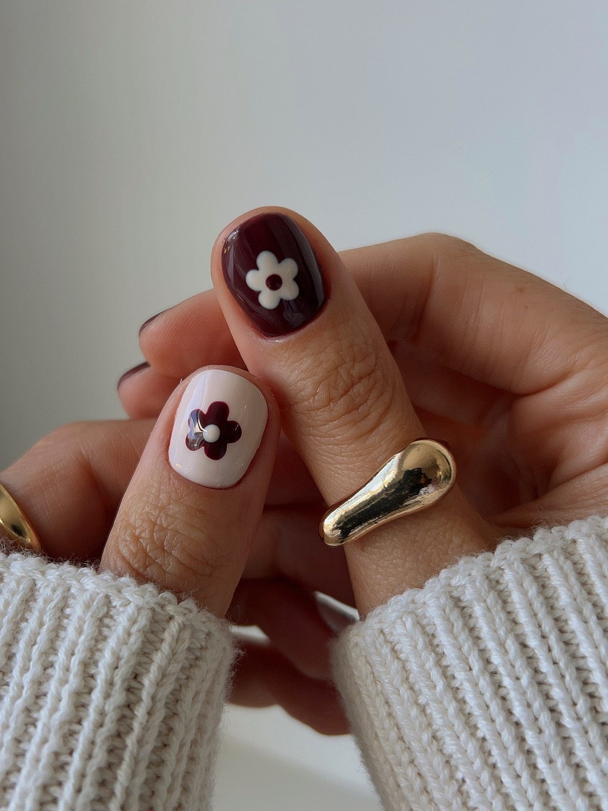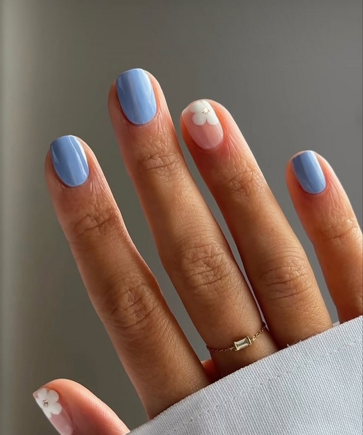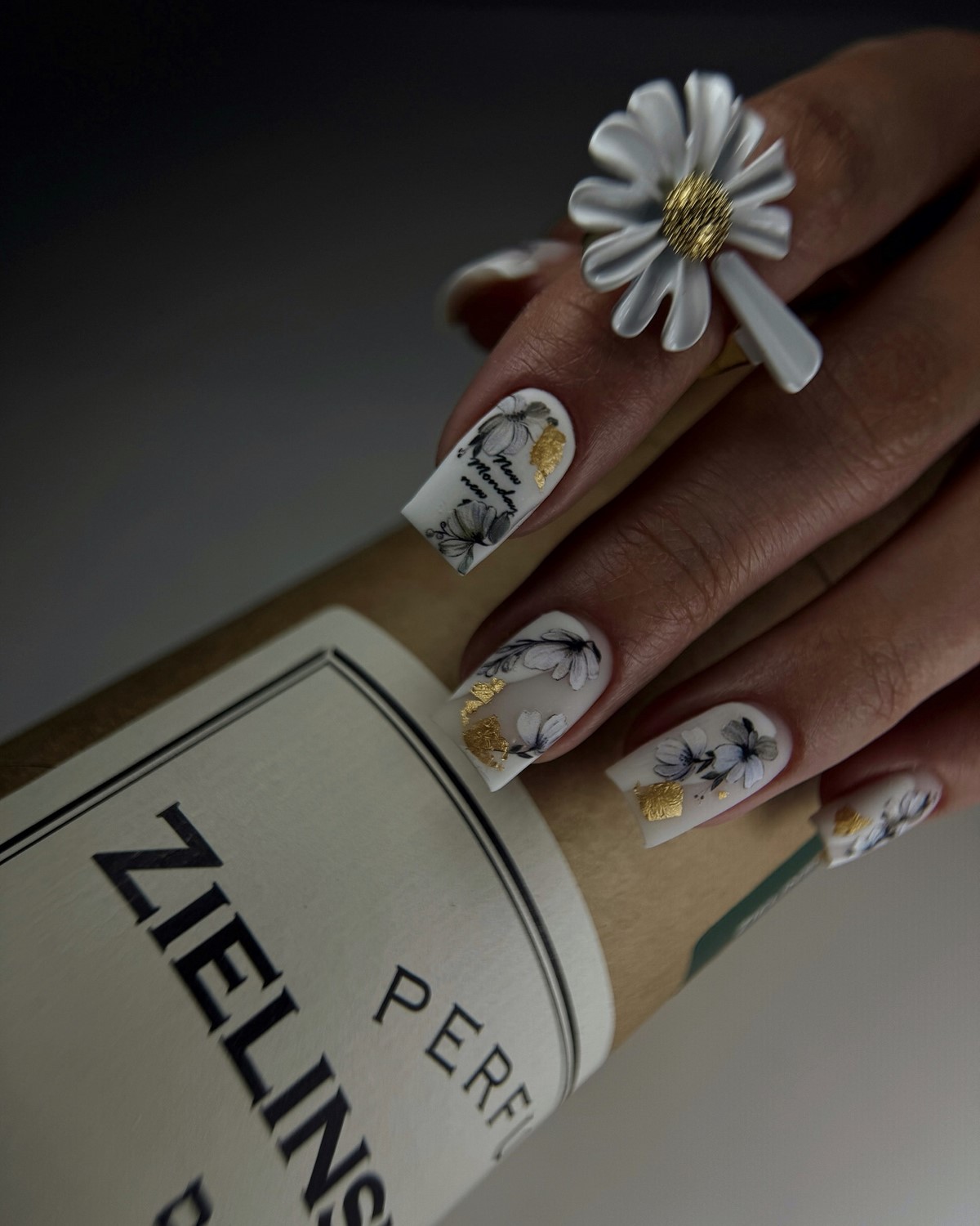 Рисованные и наклеенные цветы — тренд, который никогда не уходит. В 2025 году особенно популярны акварельные и тропические мотивы, минималистичные ромашки и лаванда.