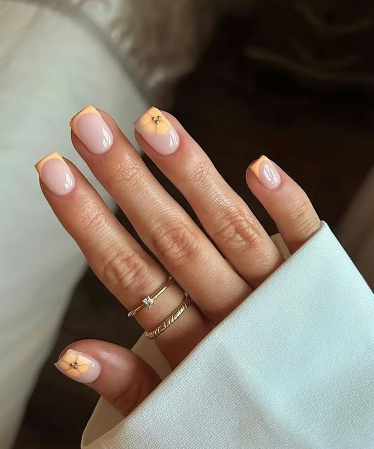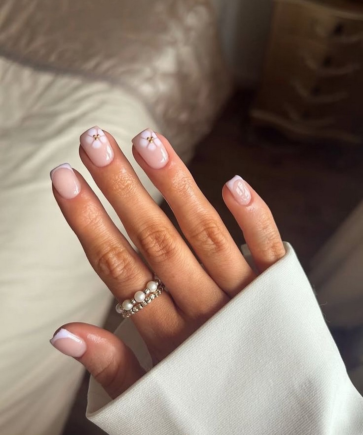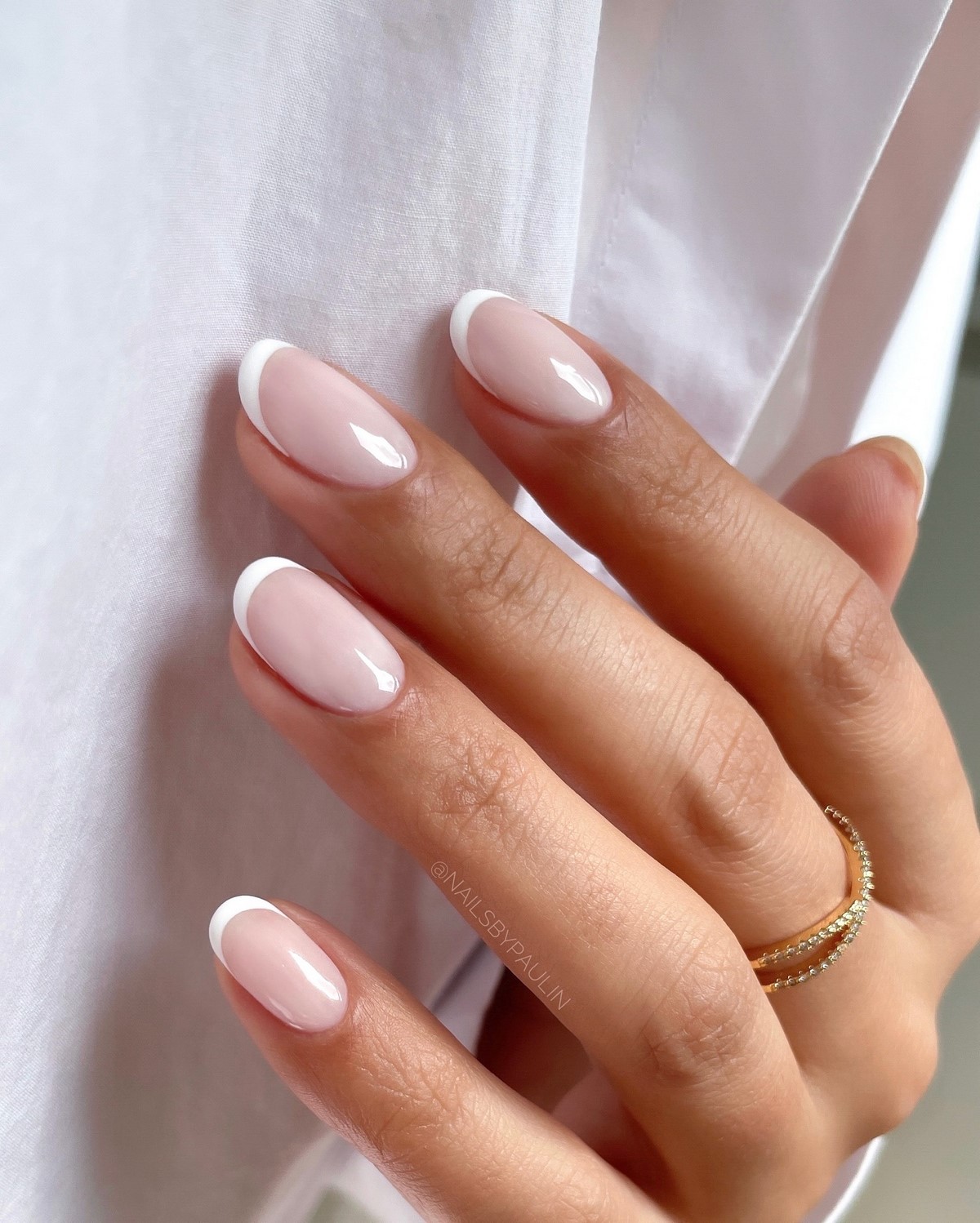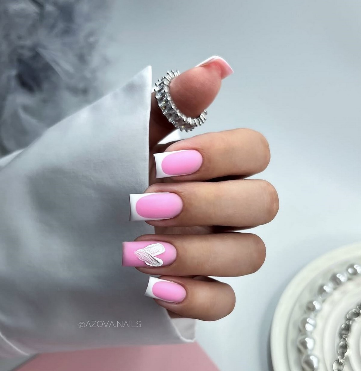 Новинка июля — градиентный френч: бежево-розовая основа с четкой белой линией. Нежно, модно и идеально подходит для повседневных и романтичных образов.