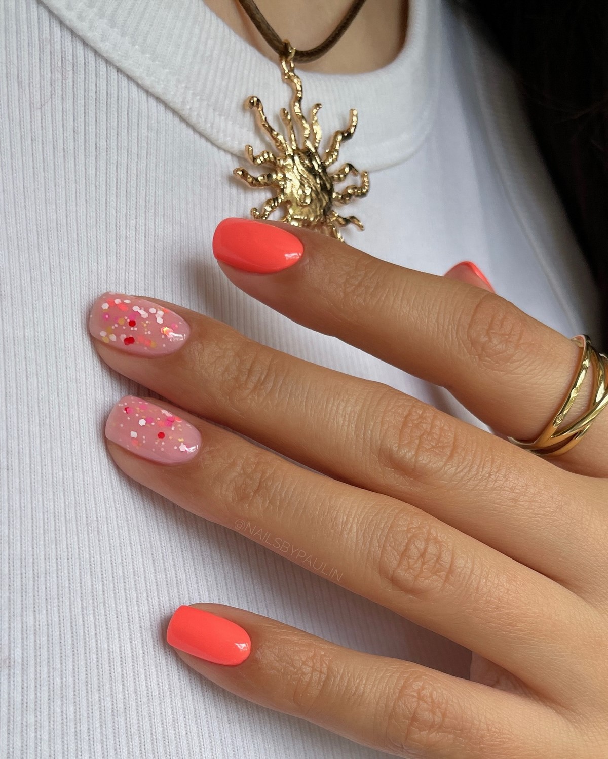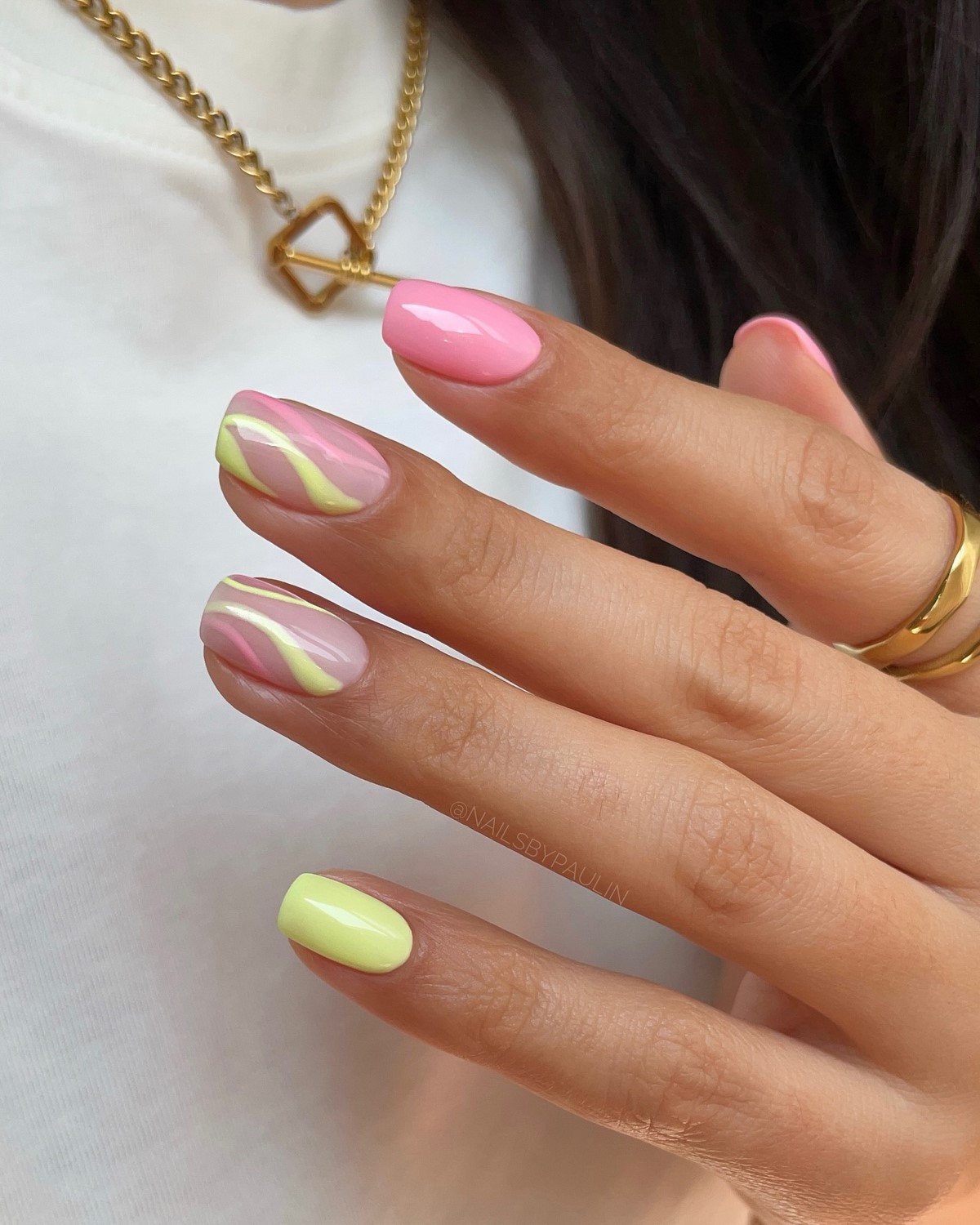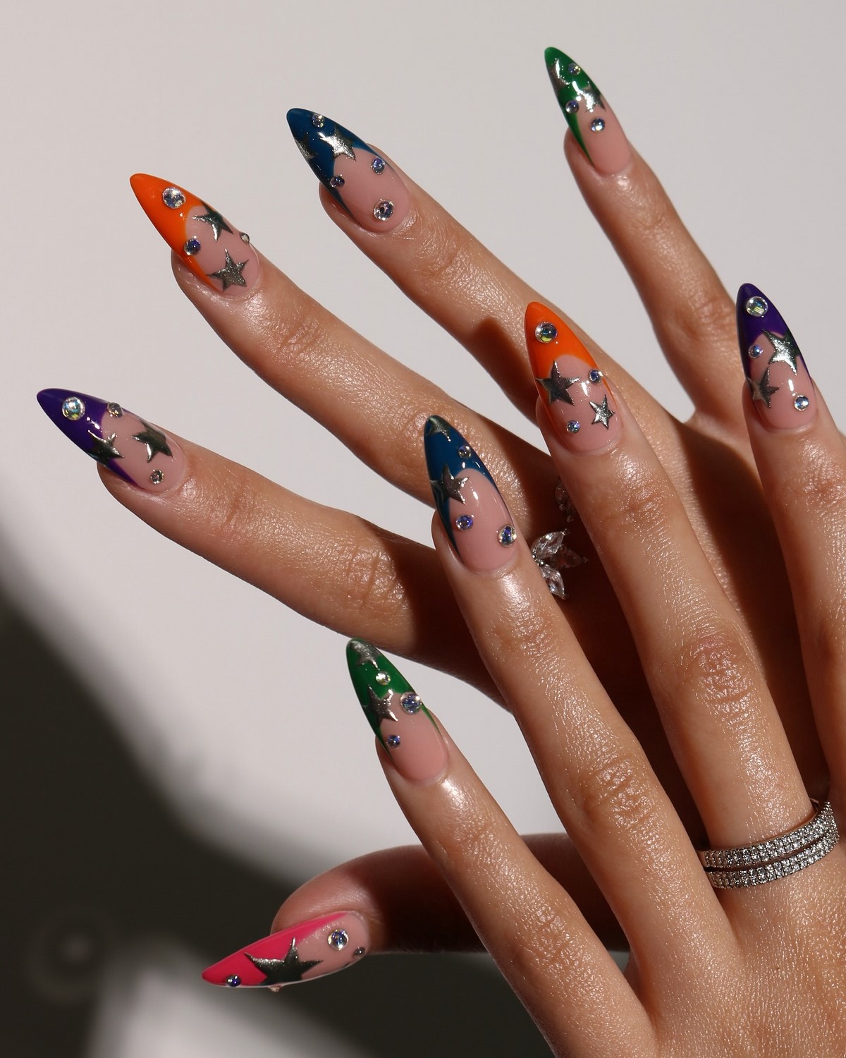 Каждый ноготь — свой цвет! Такой маникюр отражает летнее настроение, добавляя в образ жизнерадостность. Идеально смотрятся мягкие пастели или контрастные яркие оттенки — в зависимости от образа.
