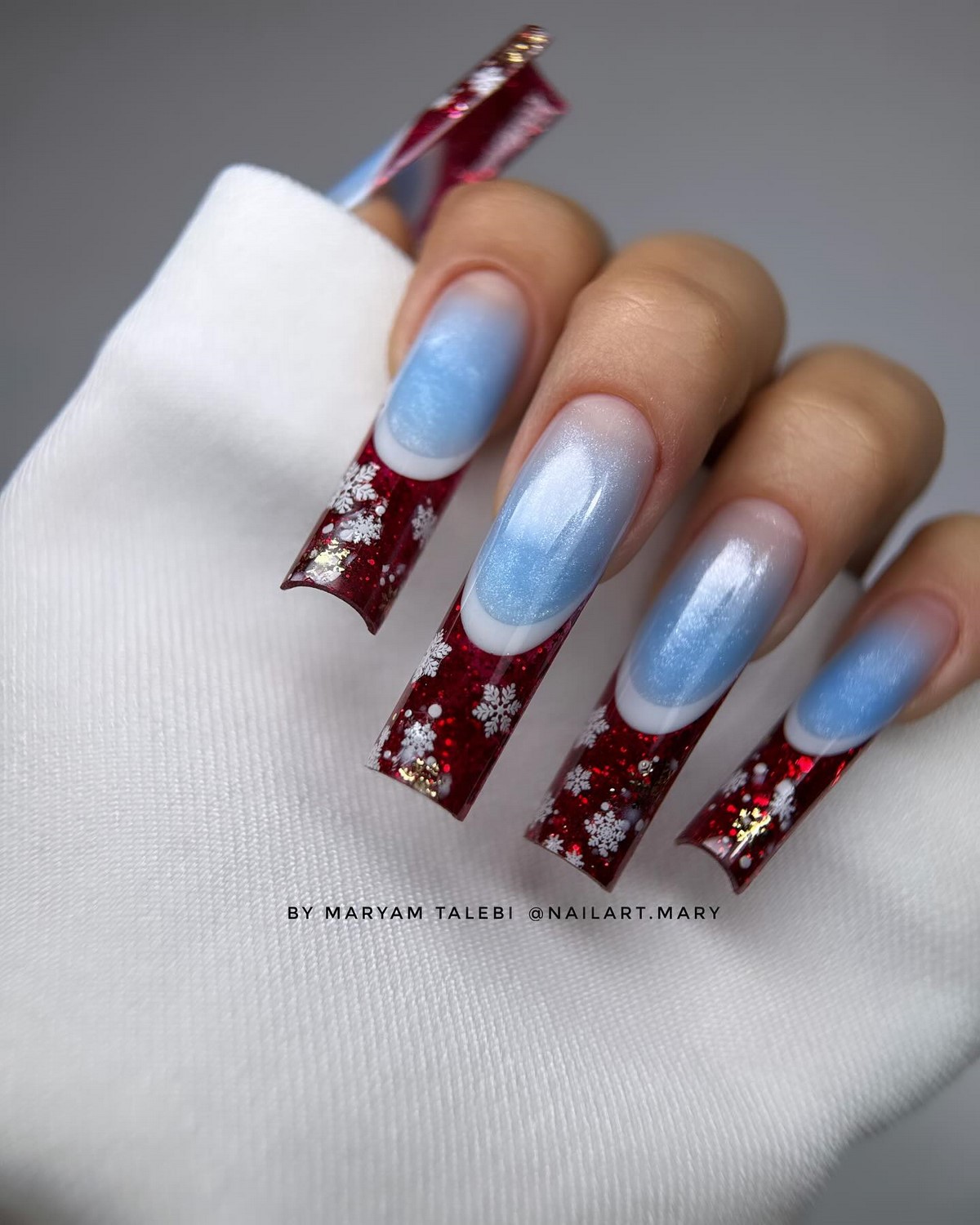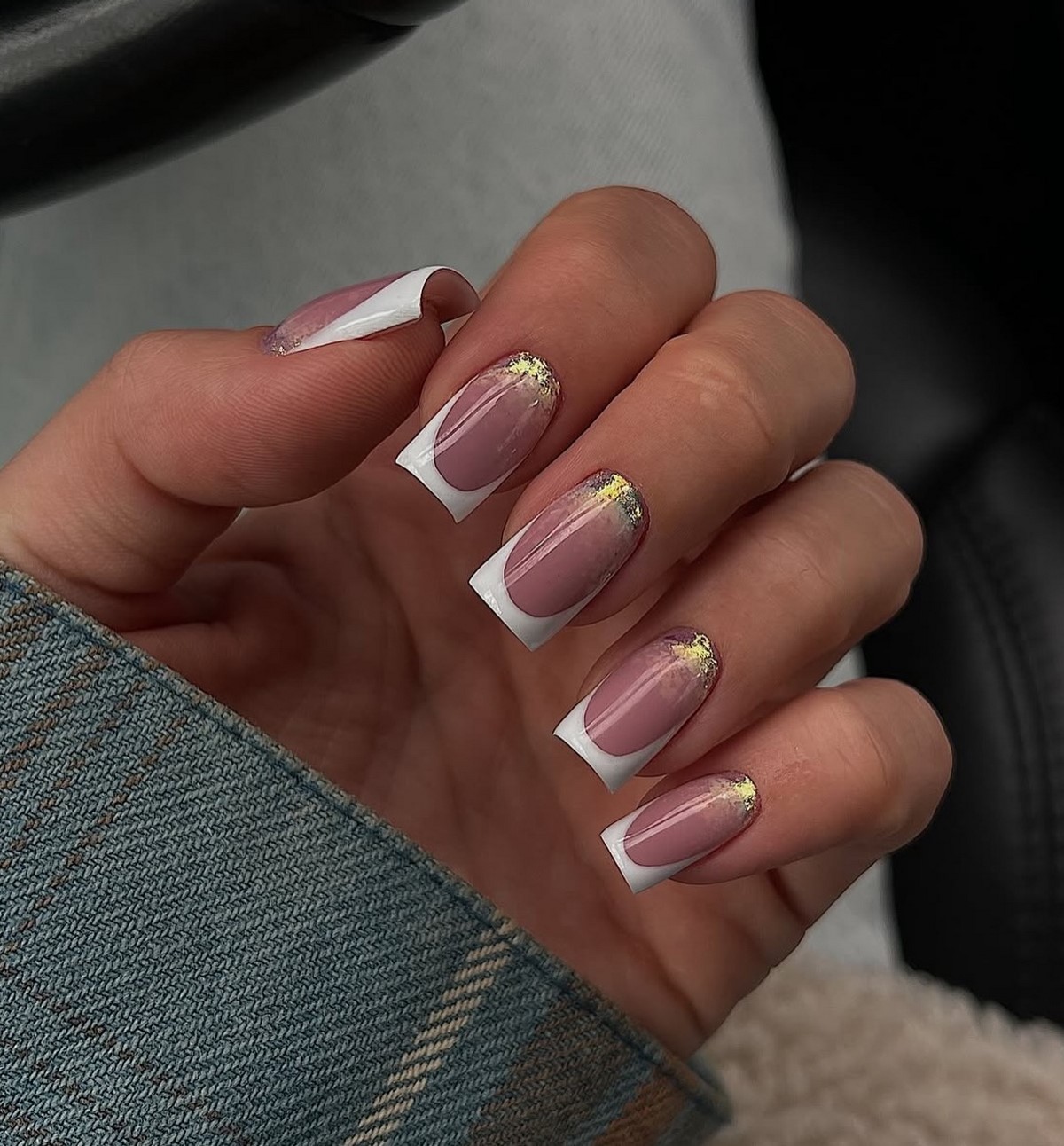 АКТУАЛЬНО | градиентный блеск стал одним из самых востребованных приемов в дизайне френча нового года, так как он визуально вытягивает ногти и делает маникюр мягче.