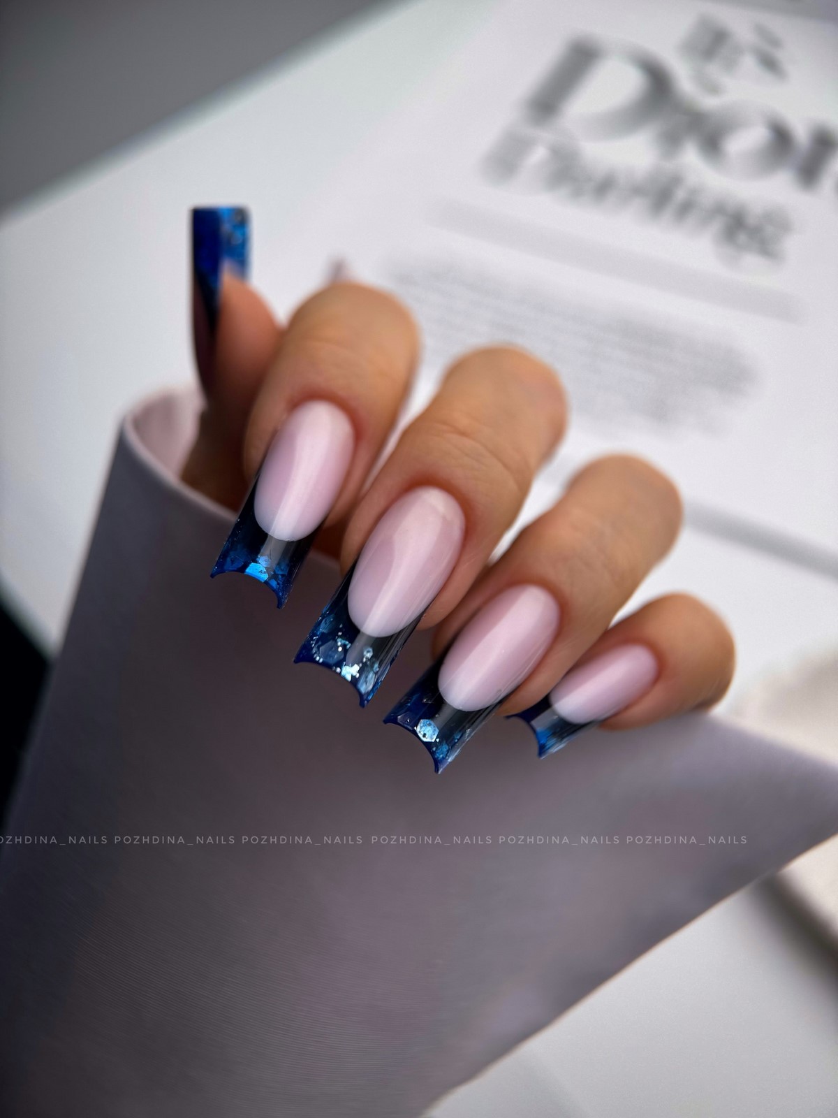 Такой дизайн подчеркивает форму ногтей и создает четкую линию френча. Он отлично смотрится на квадратных и мягких квадратных ногтях, добавляя образу графичность и стиль.