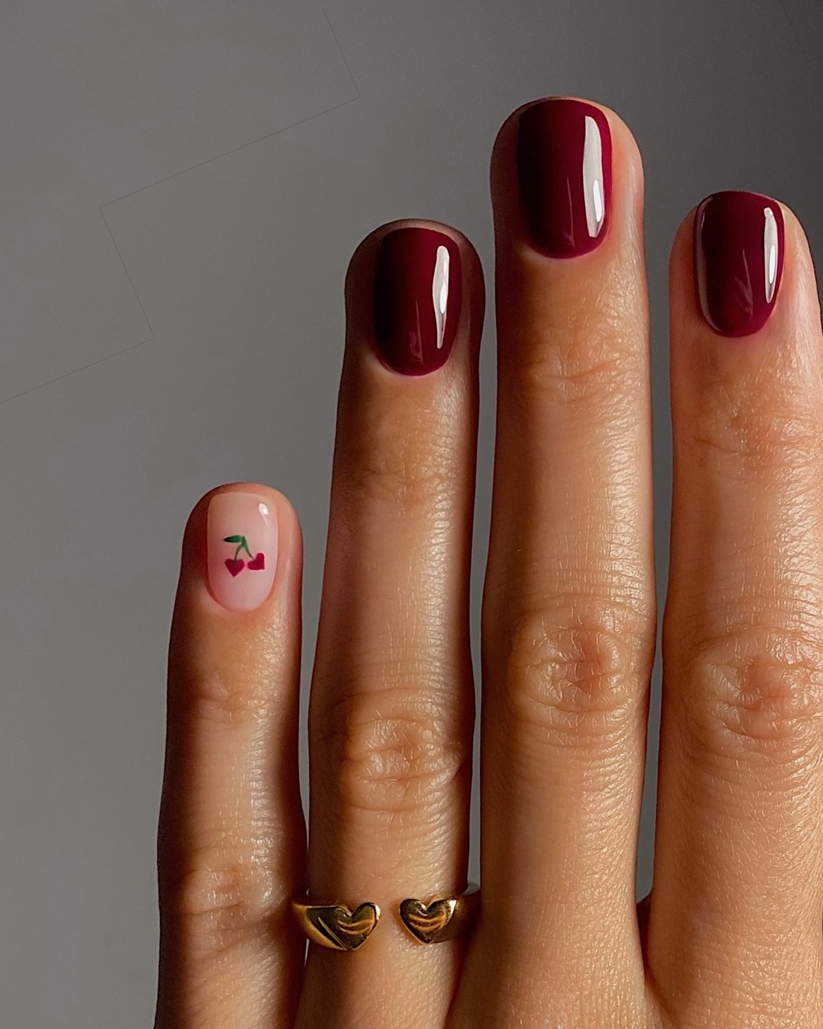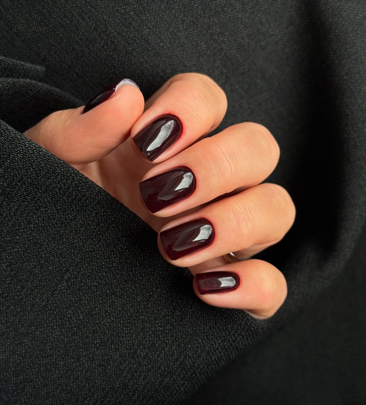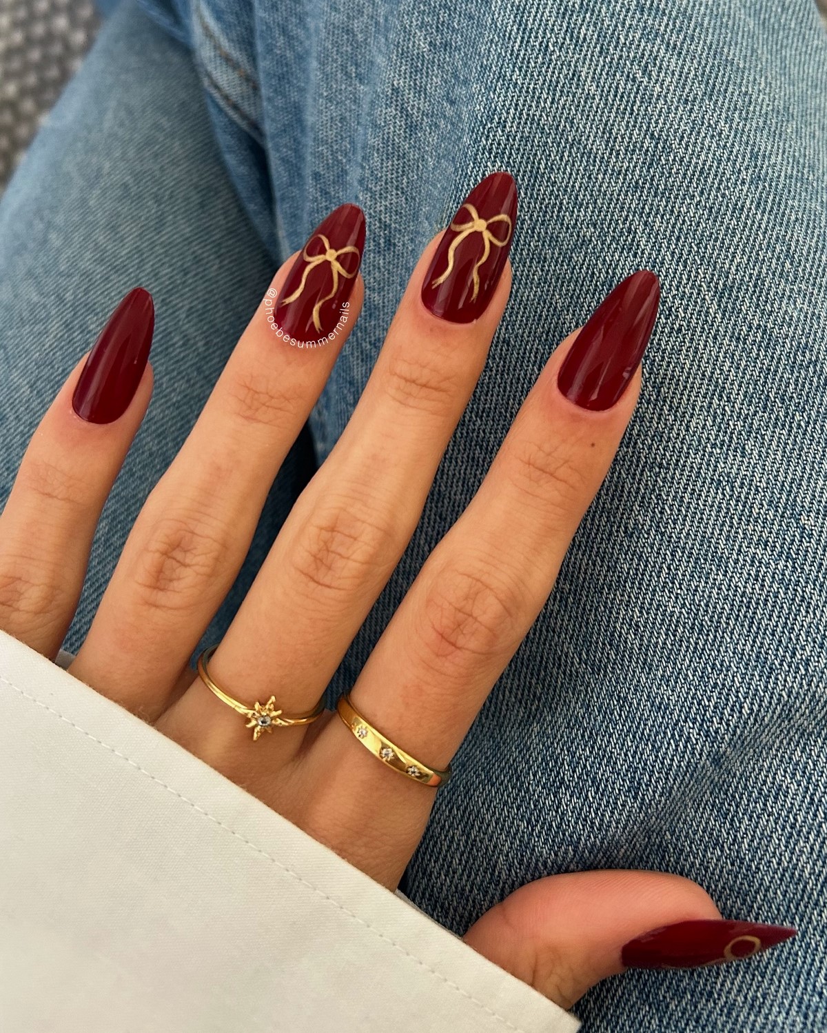 Бордовый маникюр остается классикой зимнего сезона, но в 2026 году он становится глубже и холоднее. В тренде оттенки винного, гранатового и темной вишни без излишнего красного подтона. Такой маникюр выглядит утонченно и подходит как для повседневных, так и для вечерних образов.