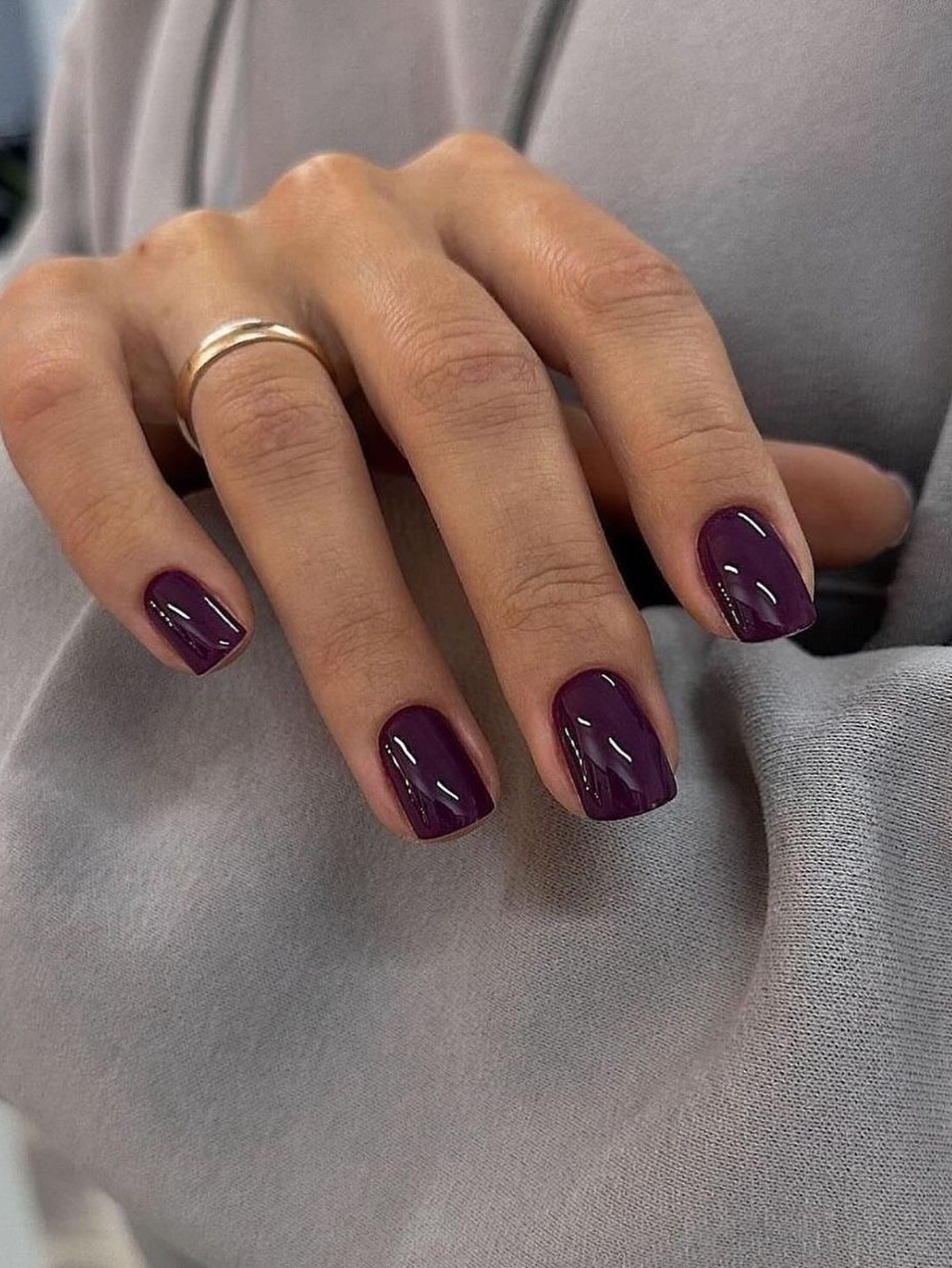 Лучше всего сливовые оттенки раскрываются на ногтях средней длины с мягкой формой. Они отлично подходят для минималистичных дизайнов и делают маникюр акцентным даже без дополнительного декора.