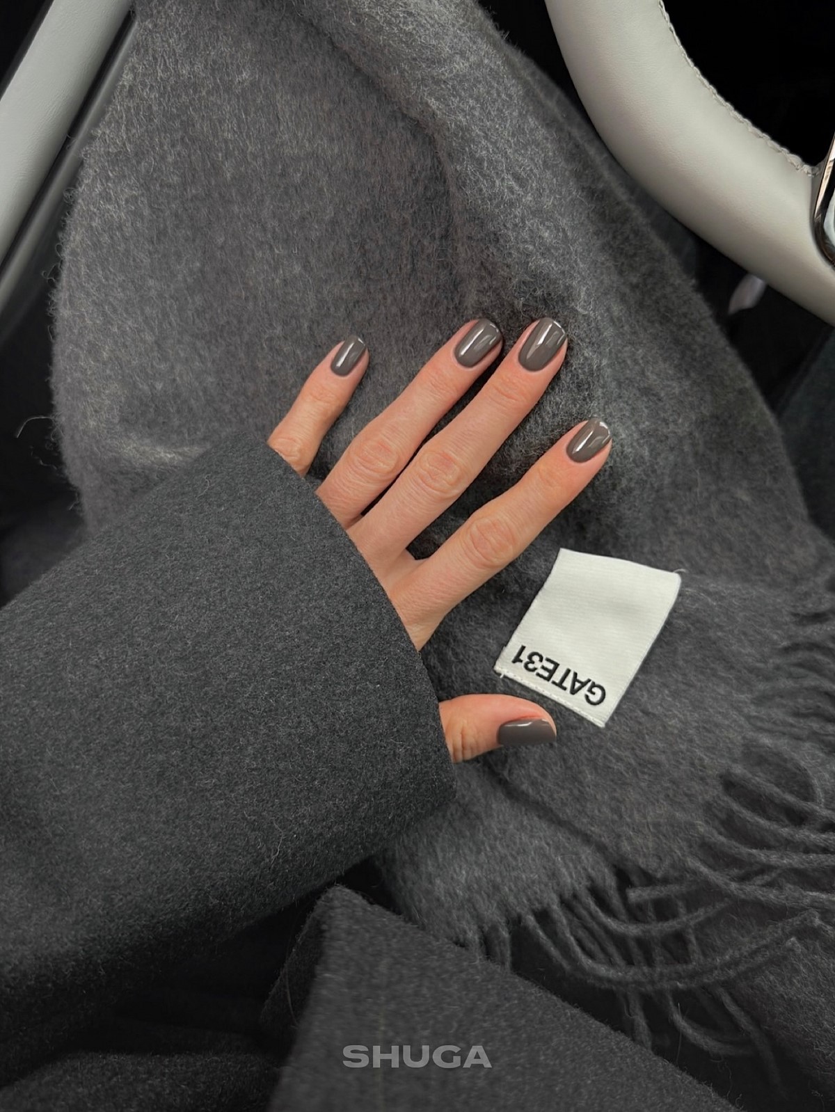 Серый маникюр зимой 2026 раскрывается с неожиданной стороны. Глубокие графитовые и антрацитовые оттенки заменяют привычный черный, создавая более мягкий и утонченный эффект. Такой маникюр идеально подходит для минималистичных зимних образов.
