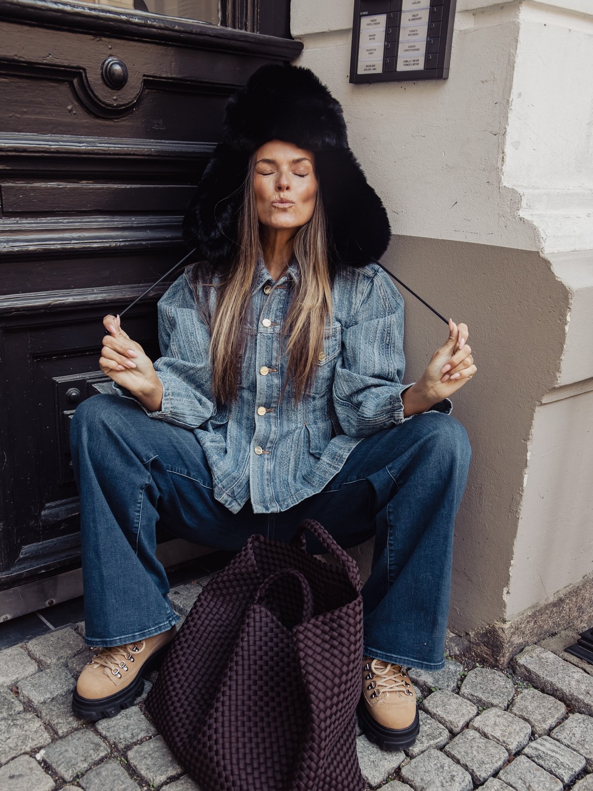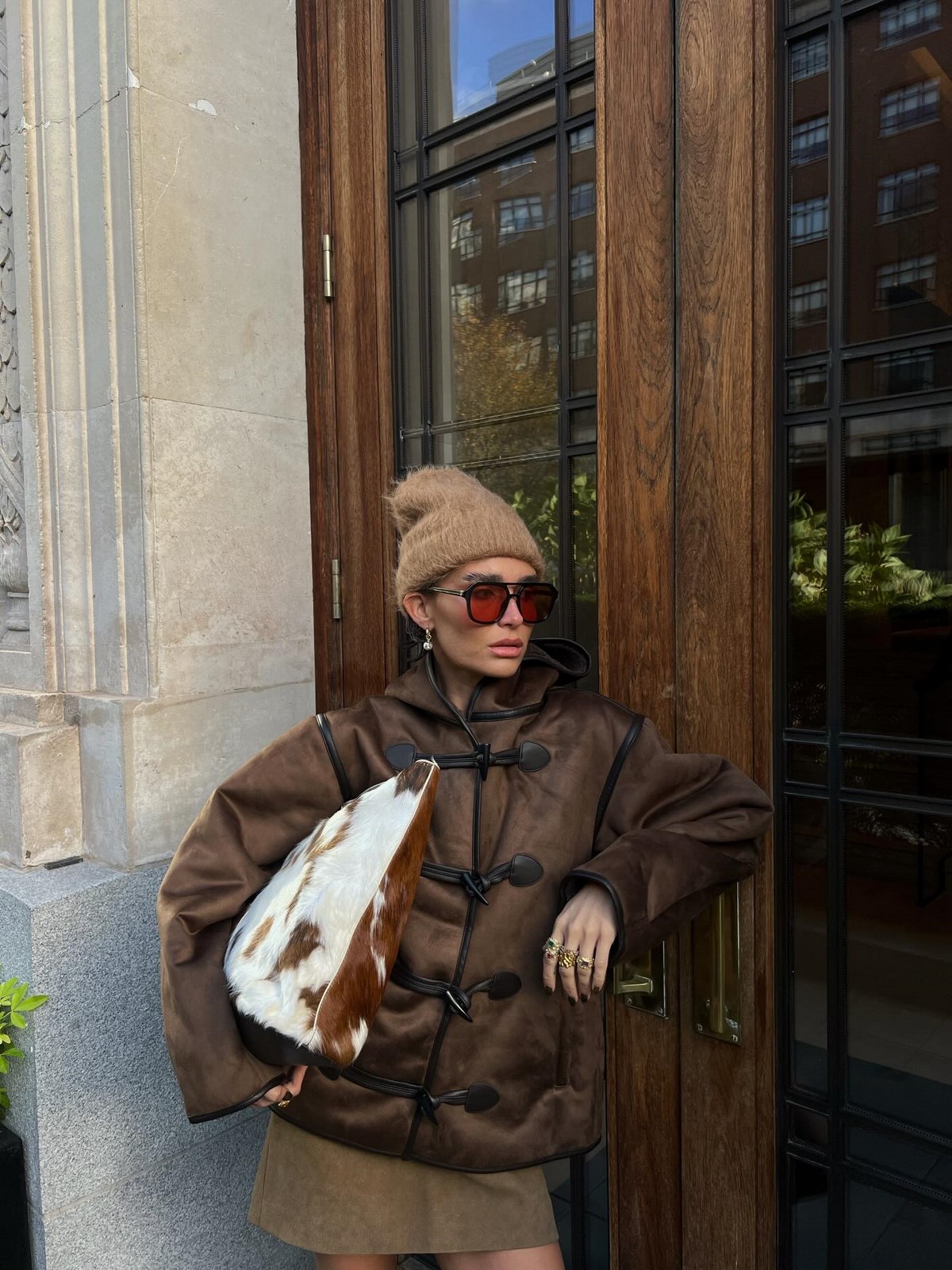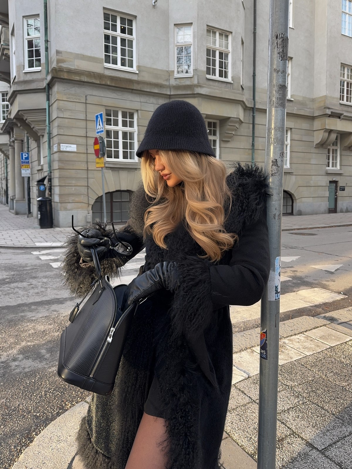 Такая шапка добавляет образу выразительности и легко становится главным акцентом зимнего аутфита.