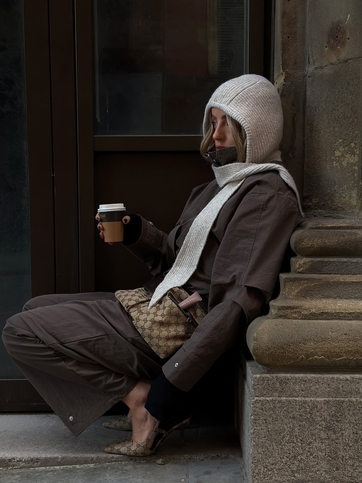 Вязаные шапки остаются незаменимыми зимой, но их стиль эволюционирует. В моде объемные, структурированные модели, шапки-бини, удлиненные силуэты и плотная фактура крупной вязки. Тренд сезона — спокойная палитра и минимализм.