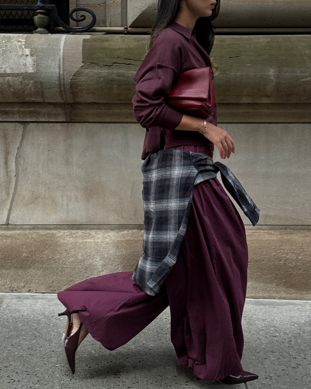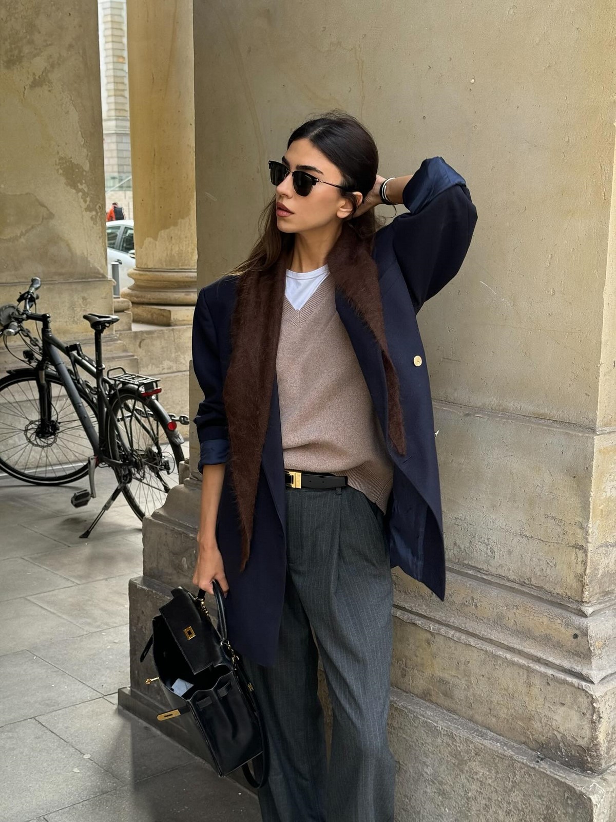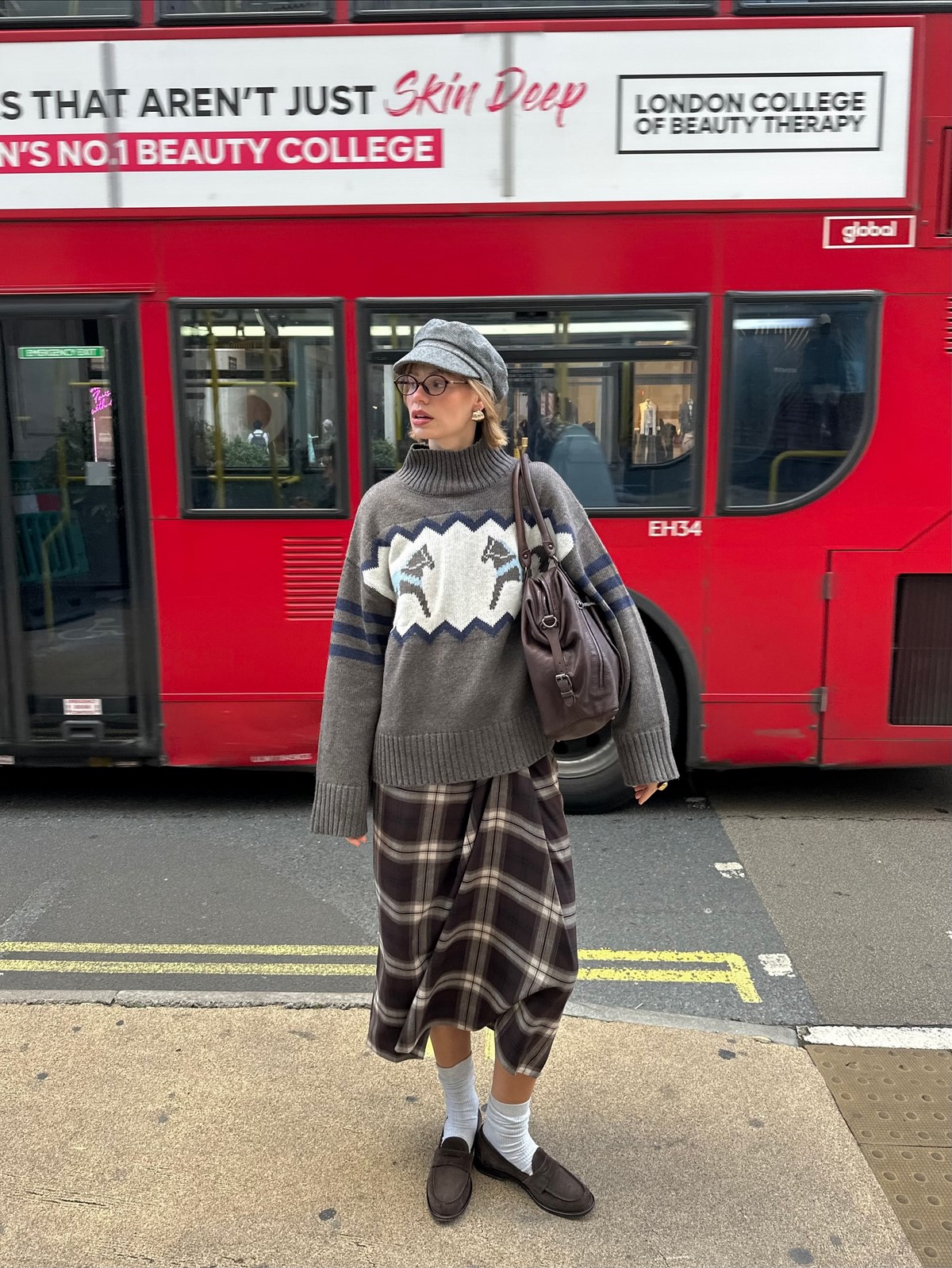 «Дедушкин» свитер с ромбами, аргайлом и другими узорами из прошлого становится главным трендом холодного сезона. Эти уютные oversize-свитера из шерсти или с добавлением кашемира создают ностальгический образ и идеально вписываются в концепцию quiet luxury. Носите их с прямыми брюками, юбками-миди или поверх платьев, создавая многослойные образы. Актуальны традиционные цветовые сочетания — бежевый с коричневым, серый с белым, а также яркие варианты в красно-зеленой гамме.
