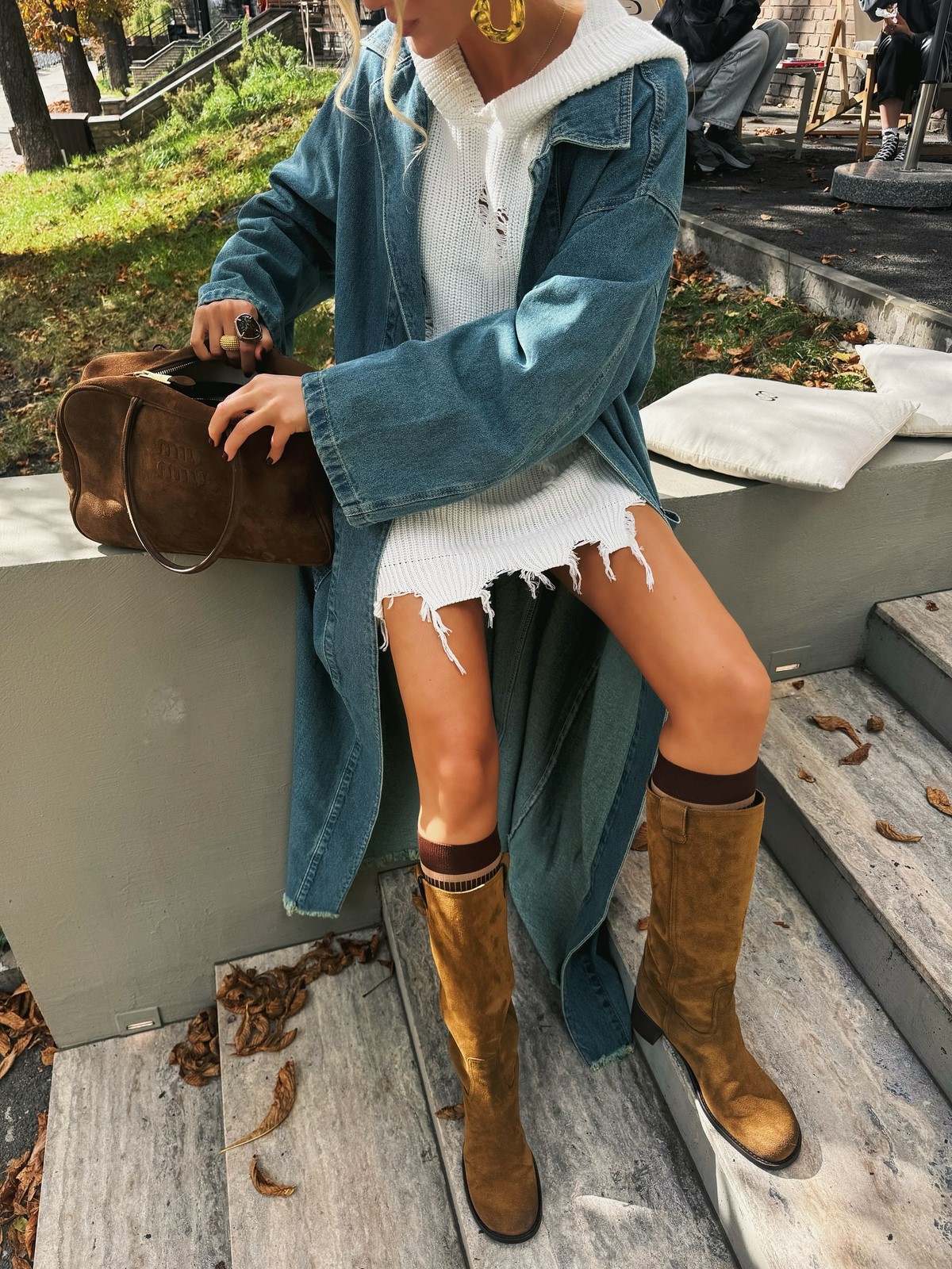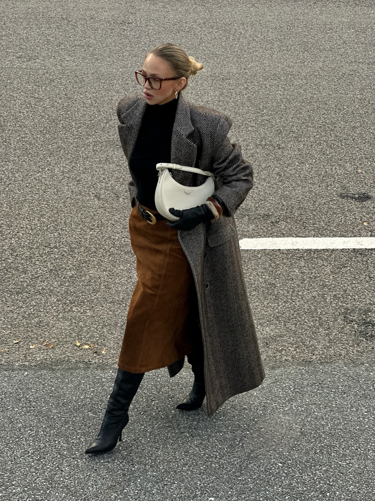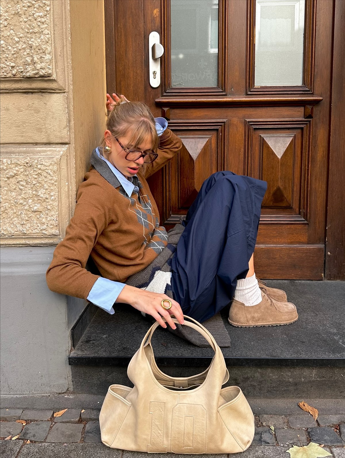 «Дедушкин» свитер с ромбами, аргайлом и другими узорами из прошлого становится главным трендом холодного сезона. Эти уютные oversize-свитера из шерсти или с добавлением кашемира создают ностальгический образ и идеально вписываются в концепцию quiet luxury. Носите их с прямыми брюками, юбками-миди или поверх платьев, создавая многослойные образы. Актуальны традиционные цветовые сочетания — бежевый с коричневым, серый с белым, а также яркие варианты в красно-зеленой гамме.
