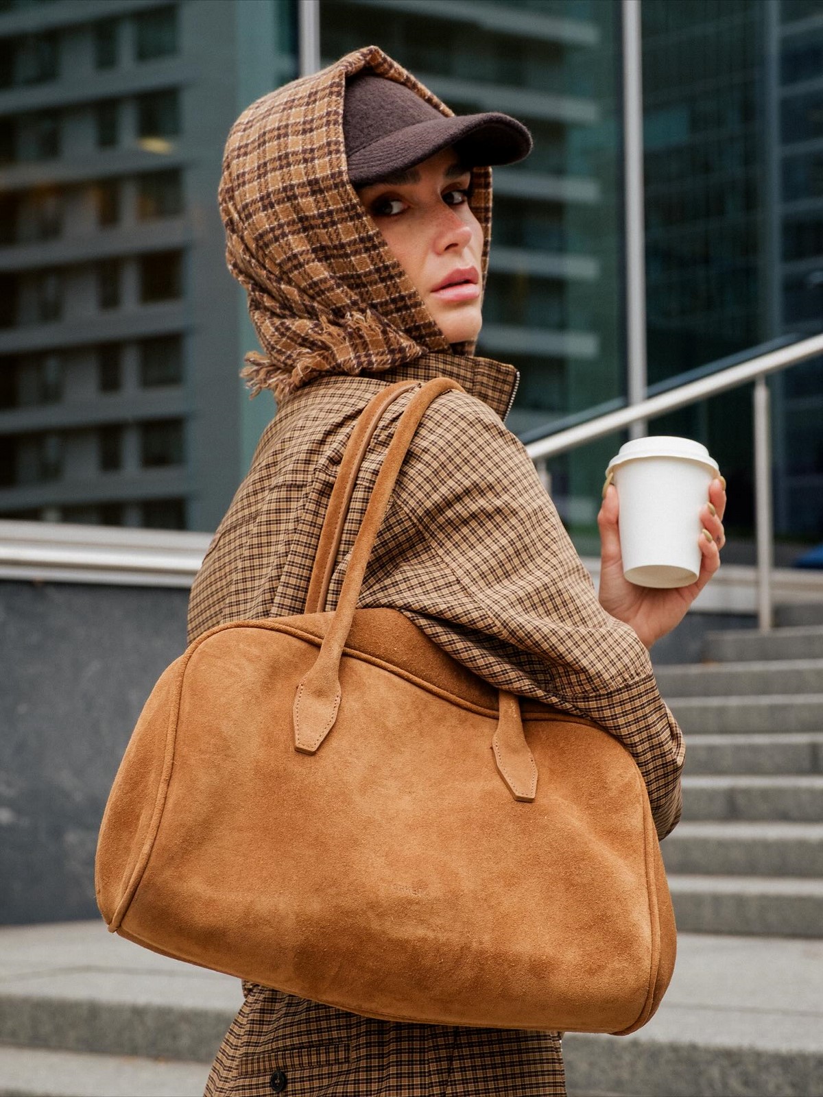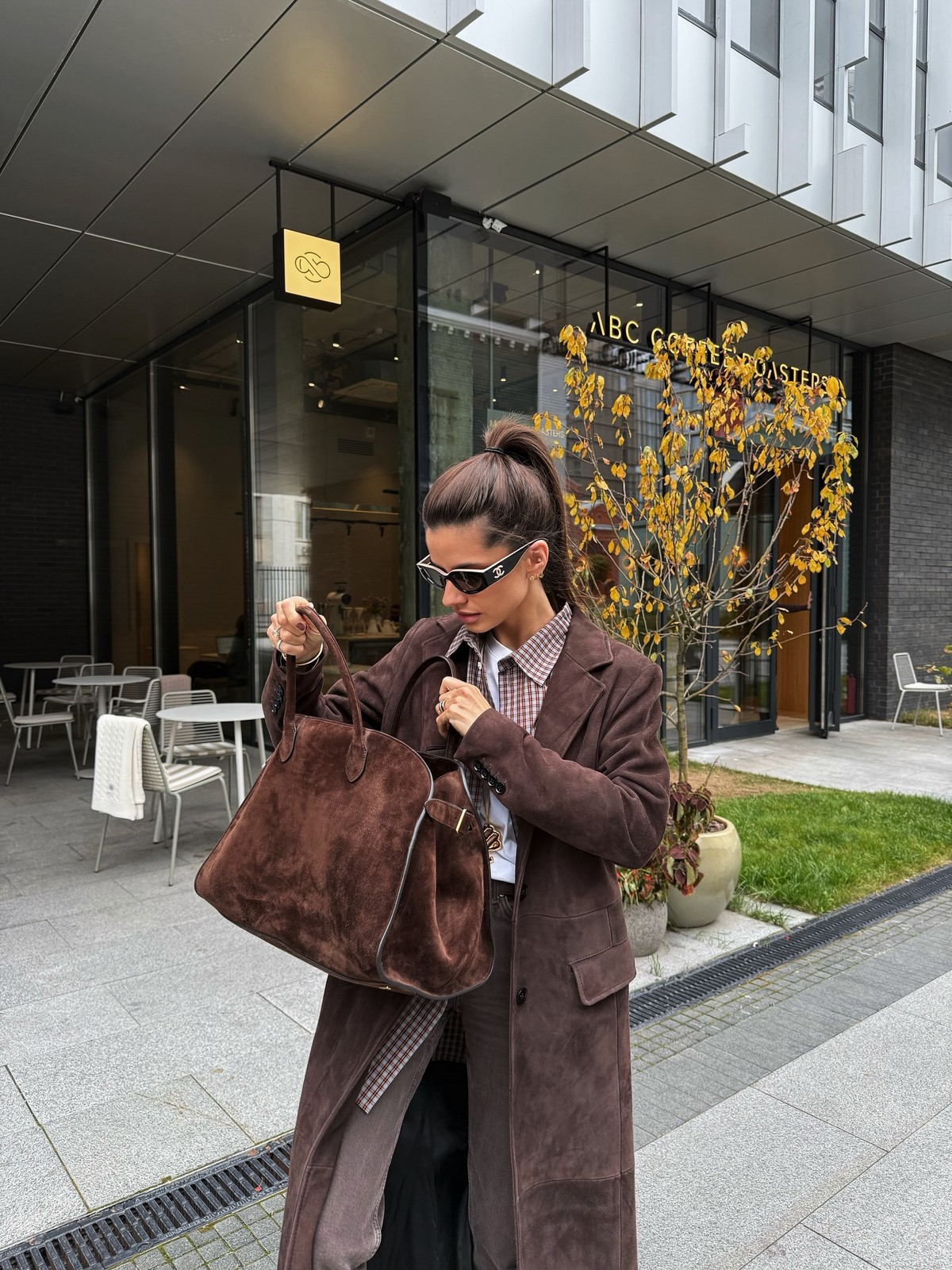 Замшевая сумка — аксессуар, который мгновенно делает любой образ более изысканным и продуманным. В сезоне 2025-2026 актуальны модели среднего размера — от классических прямоугольных до мягких slouchy-сумок и структурированных моделей с металлической фурнитурой. Цветовая палитра включает натуральные оттенки — песочный, коричневый, серый, а также глубокие бургунди и изумрудный, которые добавляют цветовой акцент базовым образам.
