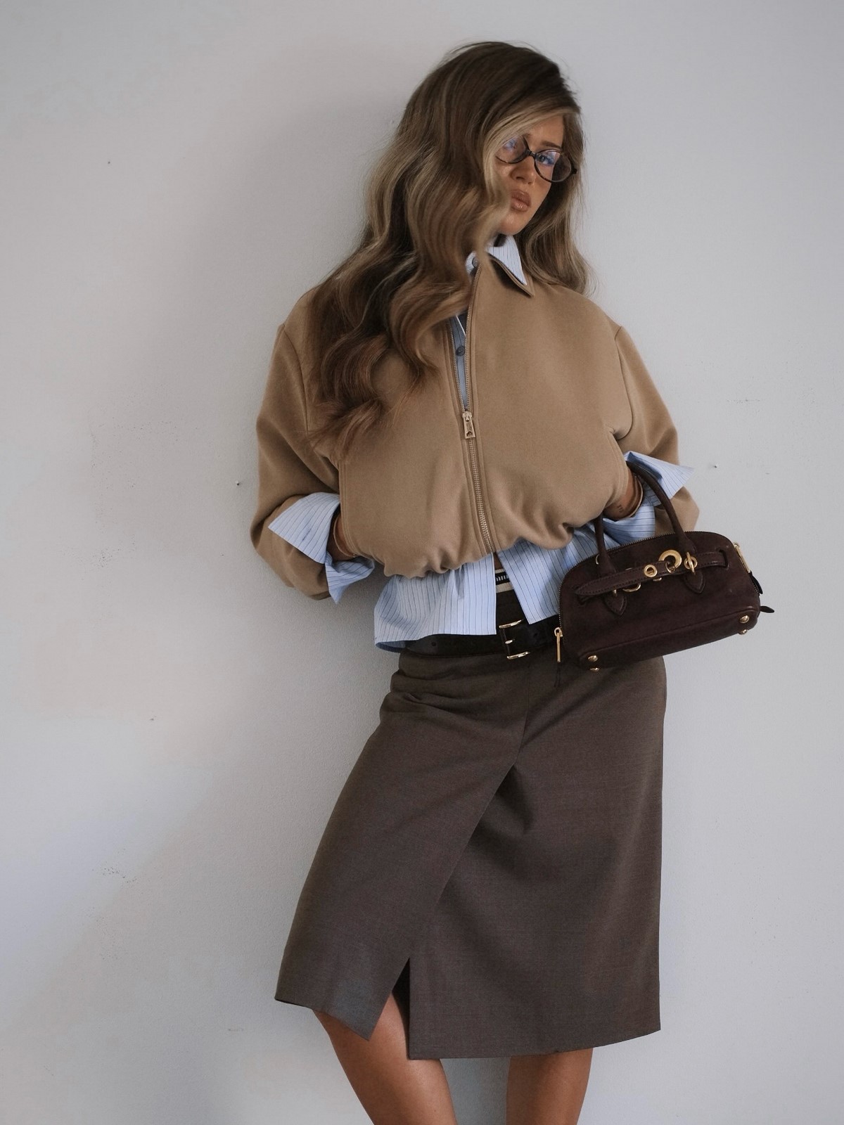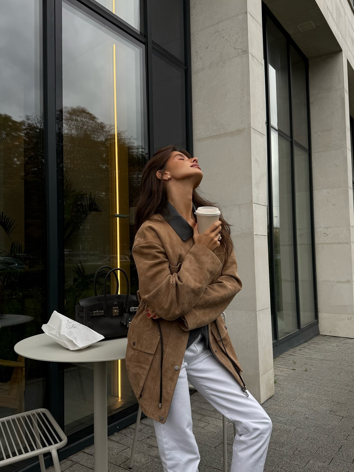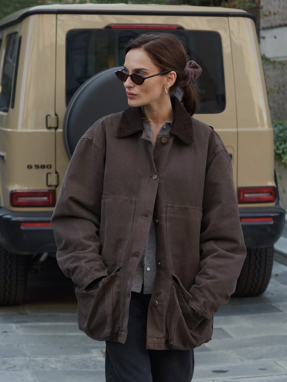 Utility-эстетика продолжает влиять на моду, и куртка рабочего становится стильным базовым элементом. Эти практичные куртки в стиле workwear из плотного денима, вельвета или канваса с множеством карманов отлично вписываются в городской гардероб. Носите их с платьями для контраста стилей или с джинсами для создания расслабленного, но продуманного образа. Актуальны модели в коричневых, бежевых и серых оттенках.
