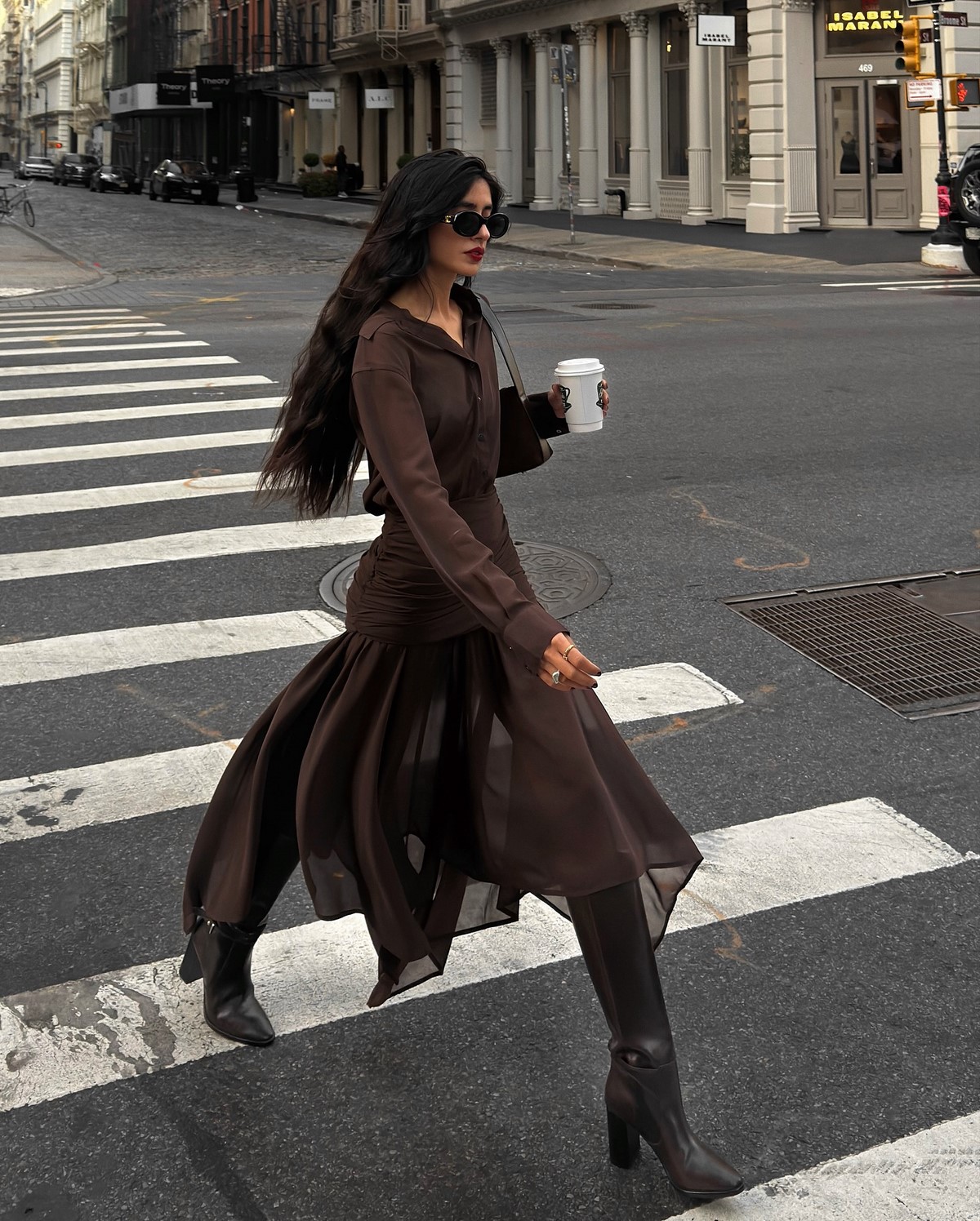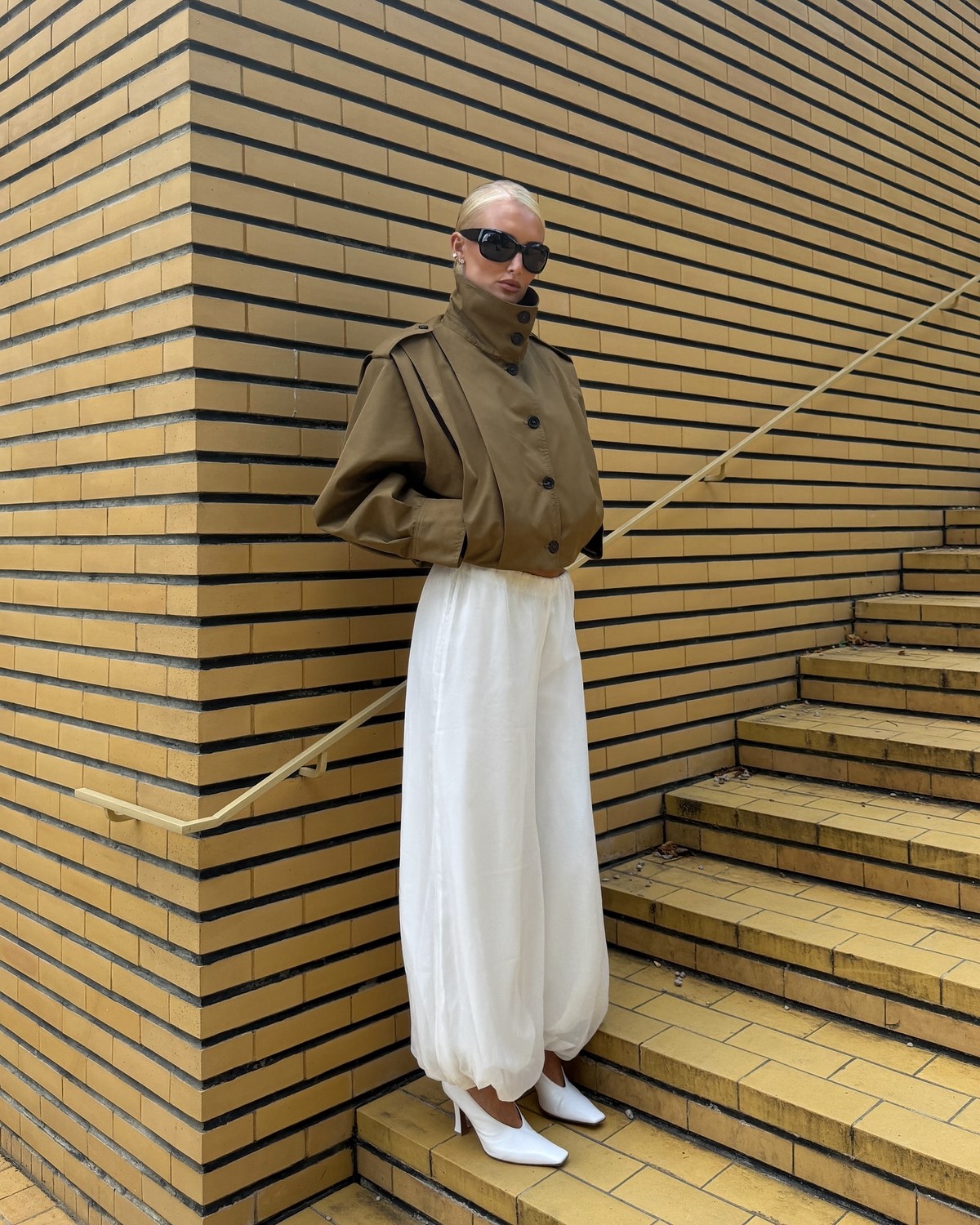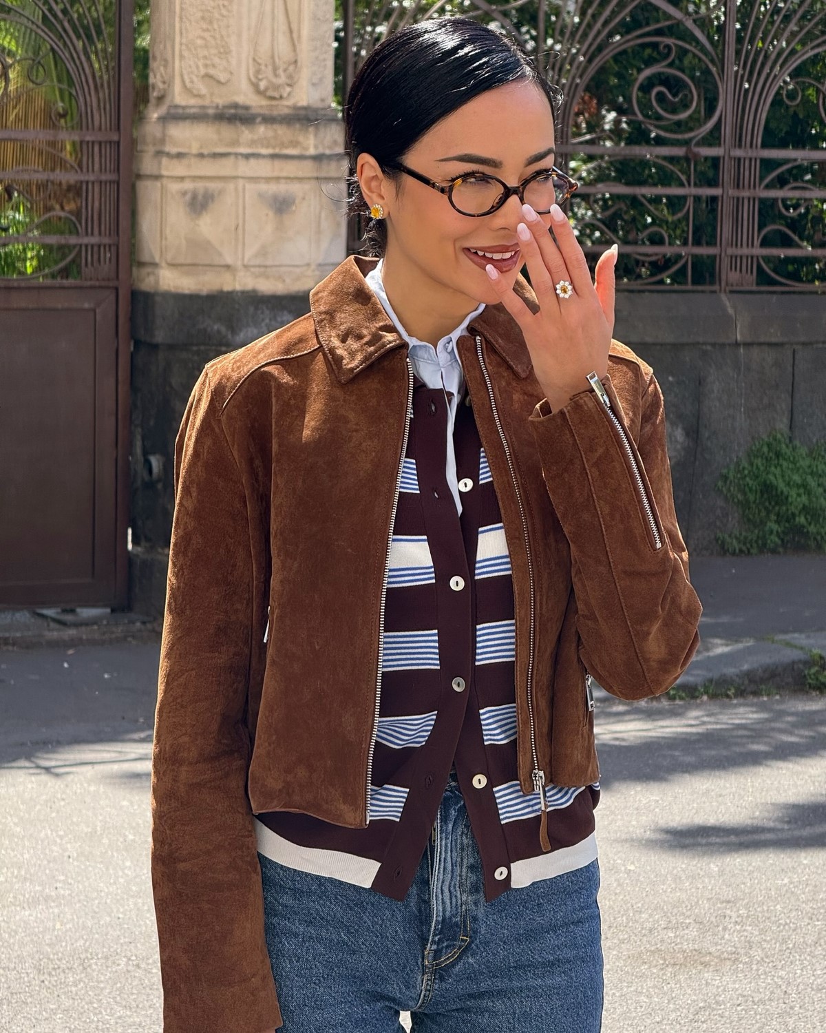 Utility-эстетика продолжает влиять на моду, и куртка рабочего становится стильным базовым элементом. Эти практичные куртки в стиле workwear из плотного денима, вельвета или канваса с множеством карманов отлично вписываются в городской гардероб. Носите их с платьями для контраста стилей или с джинсами для создания расслабленного, но продуманного образа. Актуальны модели в коричневых, бежевых и серых оттенках.