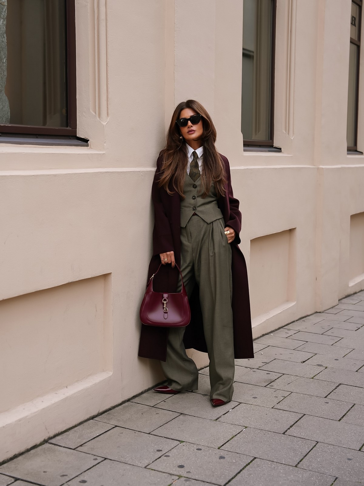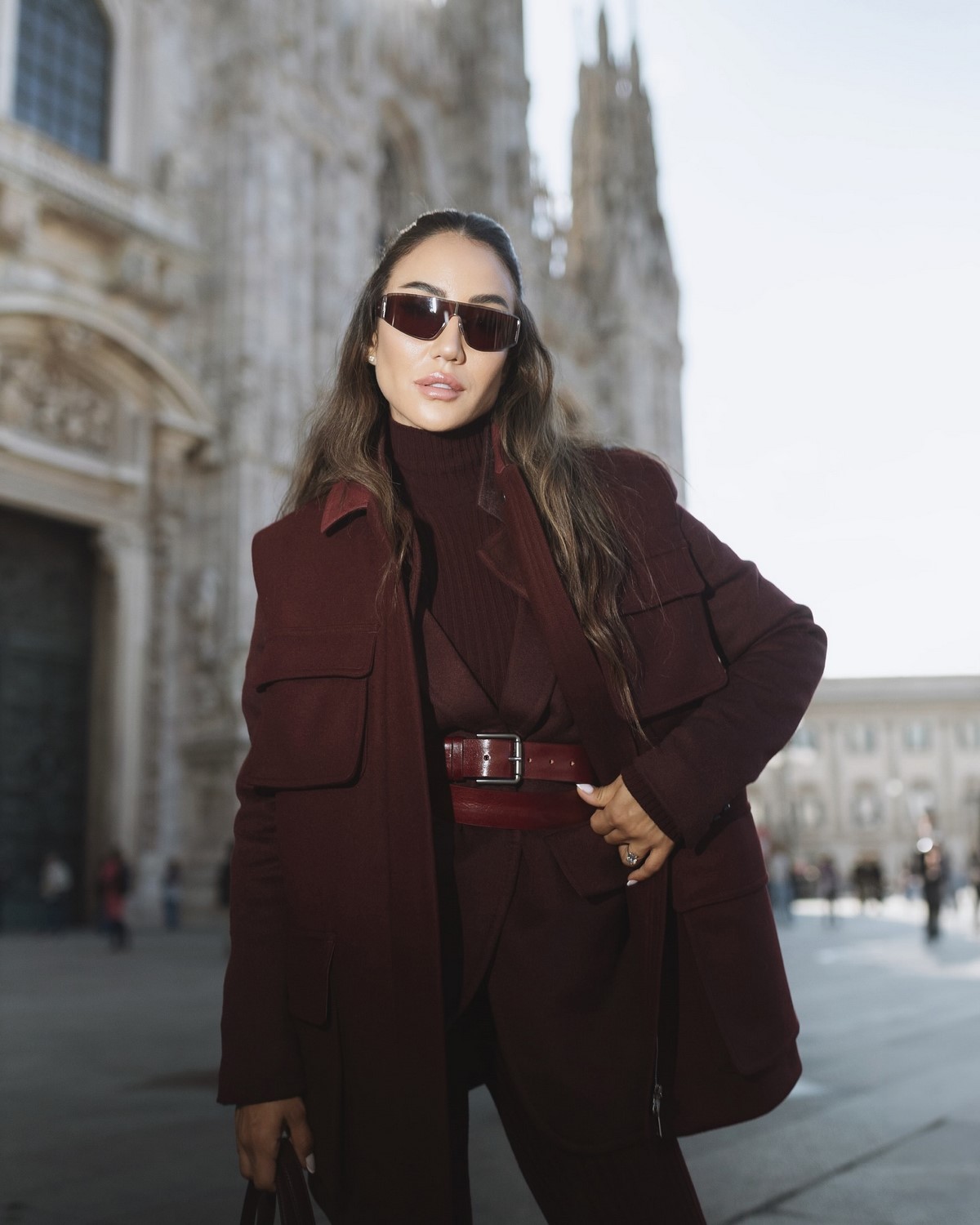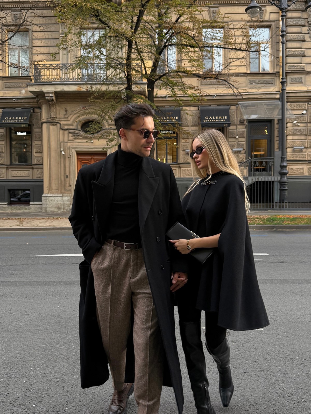 Макси-пальто и пальто-пиджак — две ключевые модели сезона. Длинные пальто в пол или до щиколотки создают драматичный, элегантный образ, особенно в исполнении из шерсти, кашемира или с добавлением альпаки. Пальто-пиджак — более короткий и структурированный вариант, идеальный для создания многослойных образов. Оба варианта актуальны в классических цветах — сером, черном, кэмел — а также в трендовом шоколадном и бургунди.