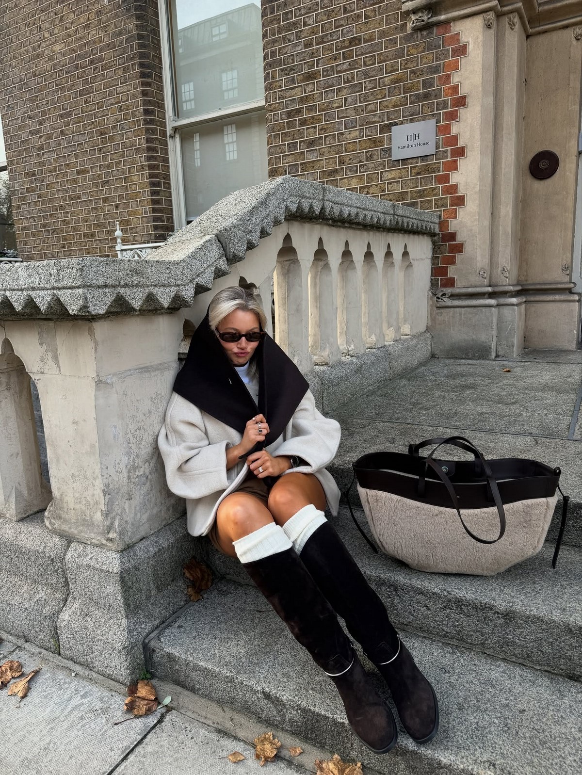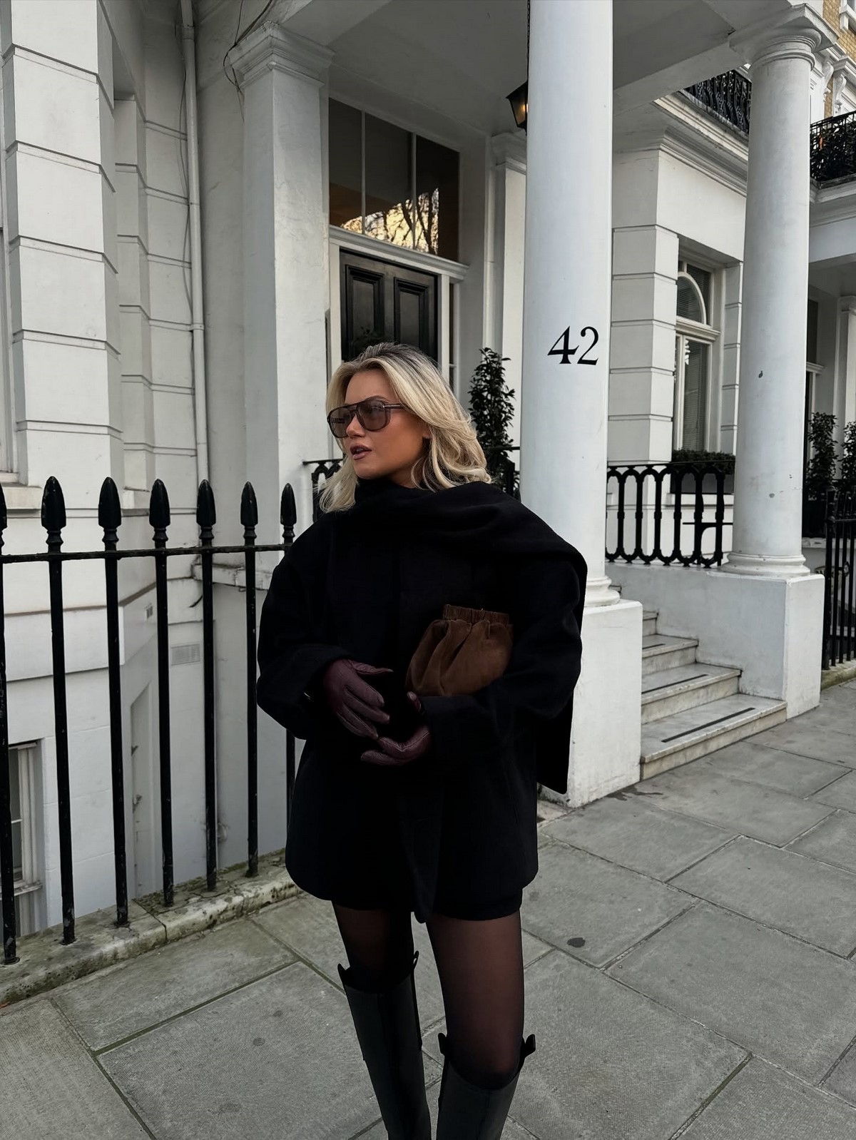 Неожиданный, но актуальный элемент осенне-зимнего гардероба — мини-шорты из плотных материалов, таких как кожа, замша или шерстяные ткани. Их носят с плотными колготками или леггинсами и высокими сапогами, создавая интересные пропорции. Шорты отлично сочетаются с объемными свитерами, пиджаками и пальто-пиджаками, позволяя играть с балансом объемов и создавать стильные образы для городской жизни.