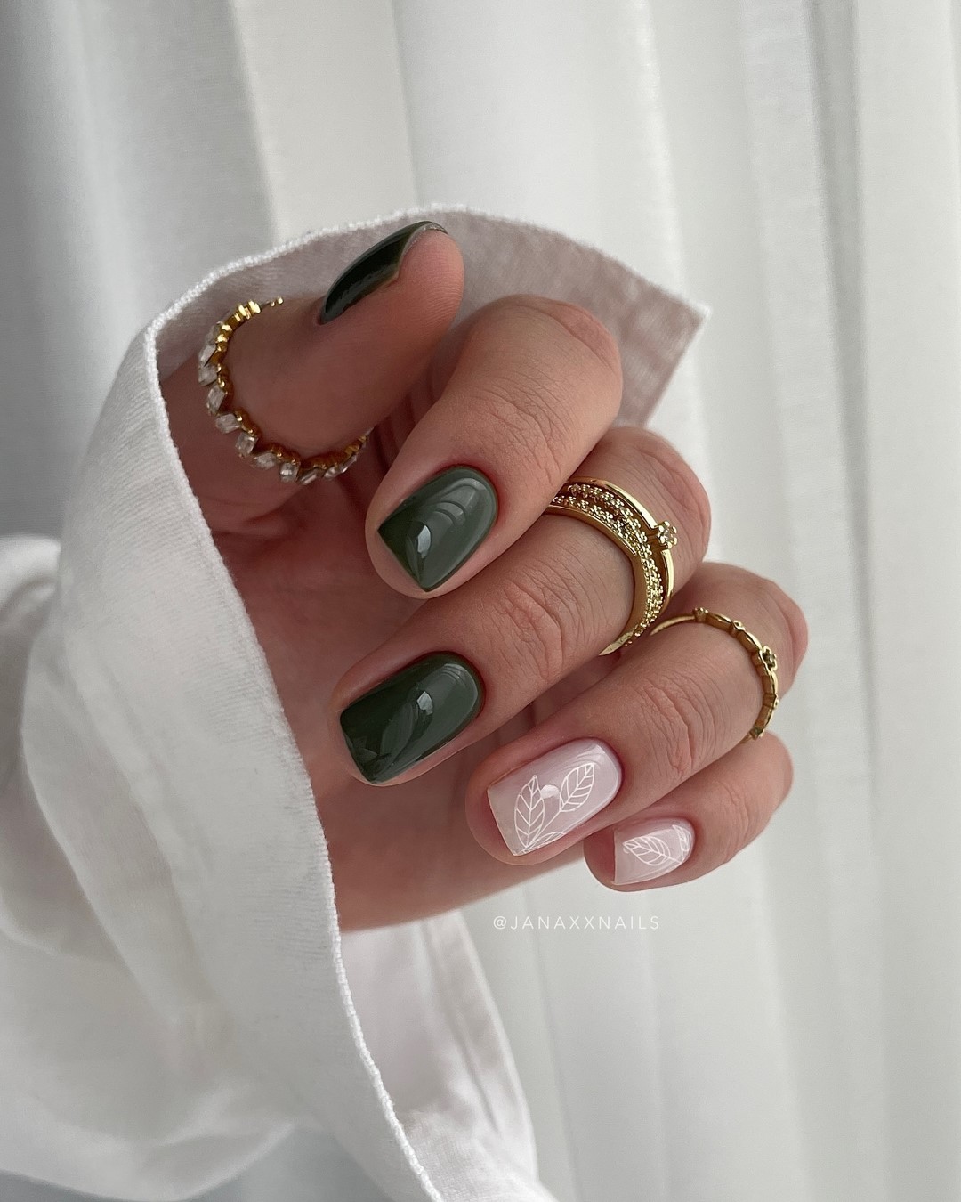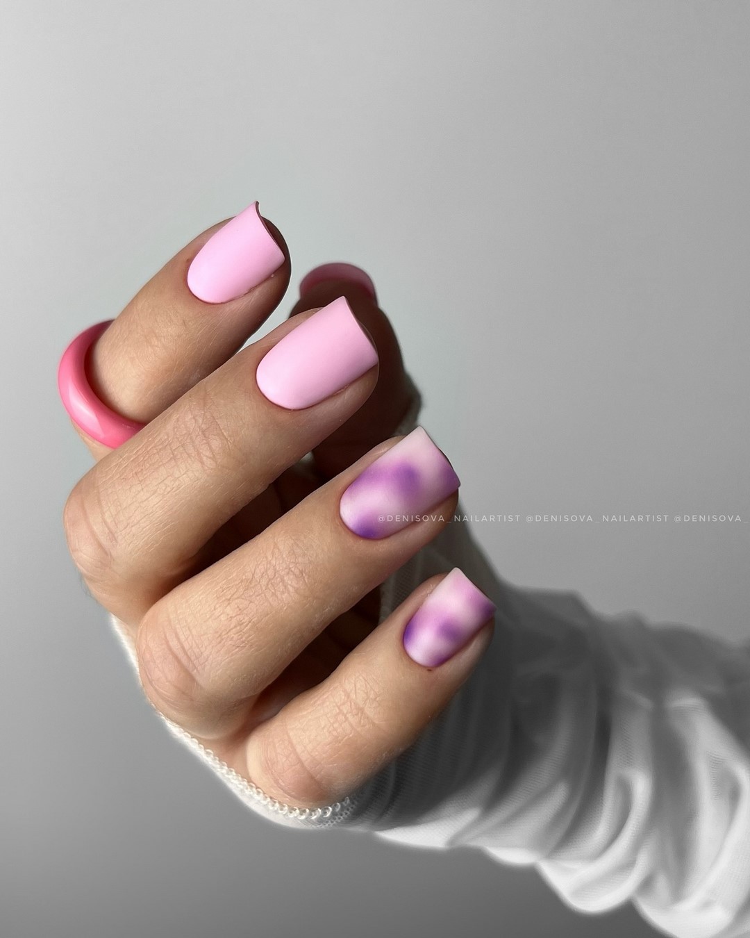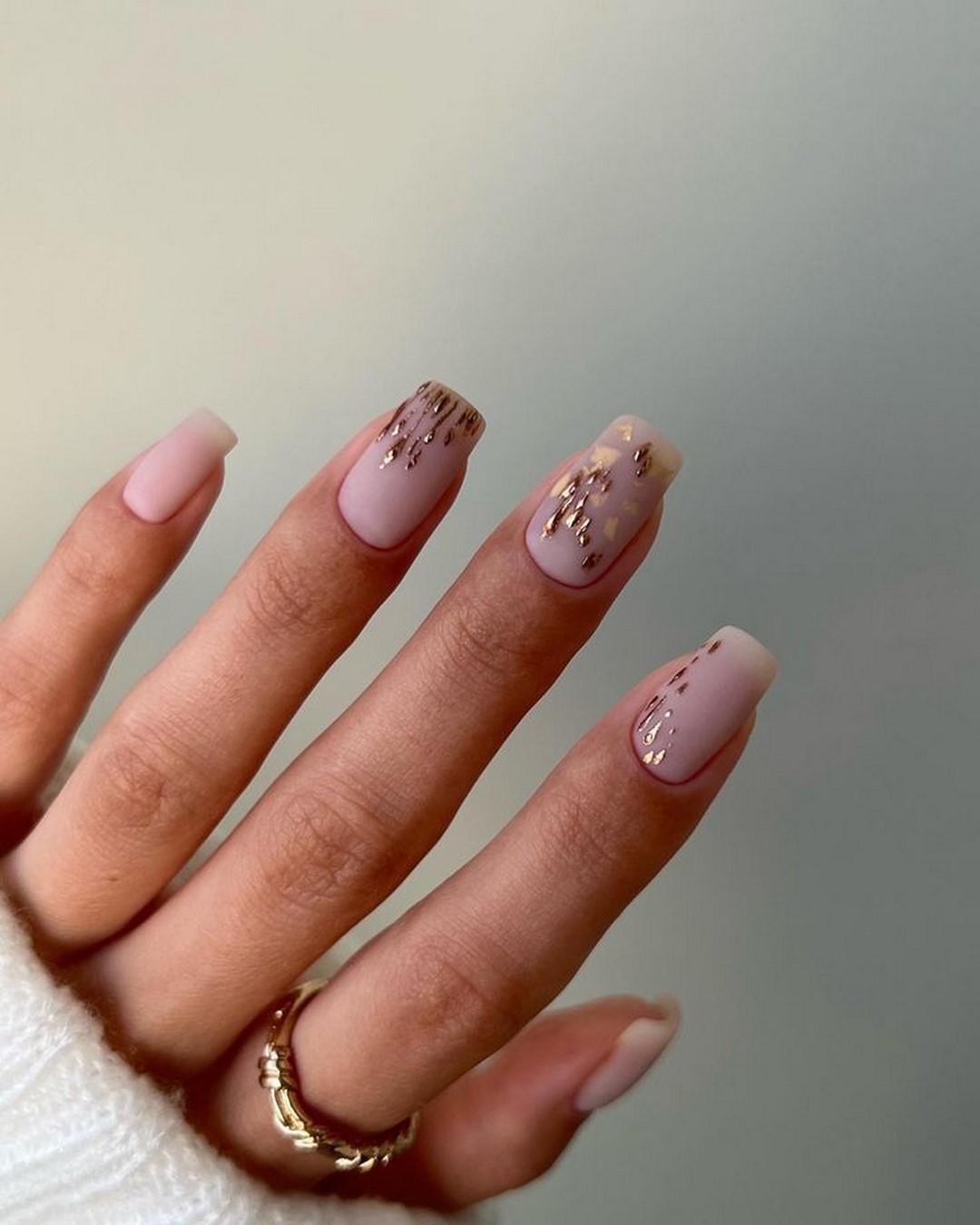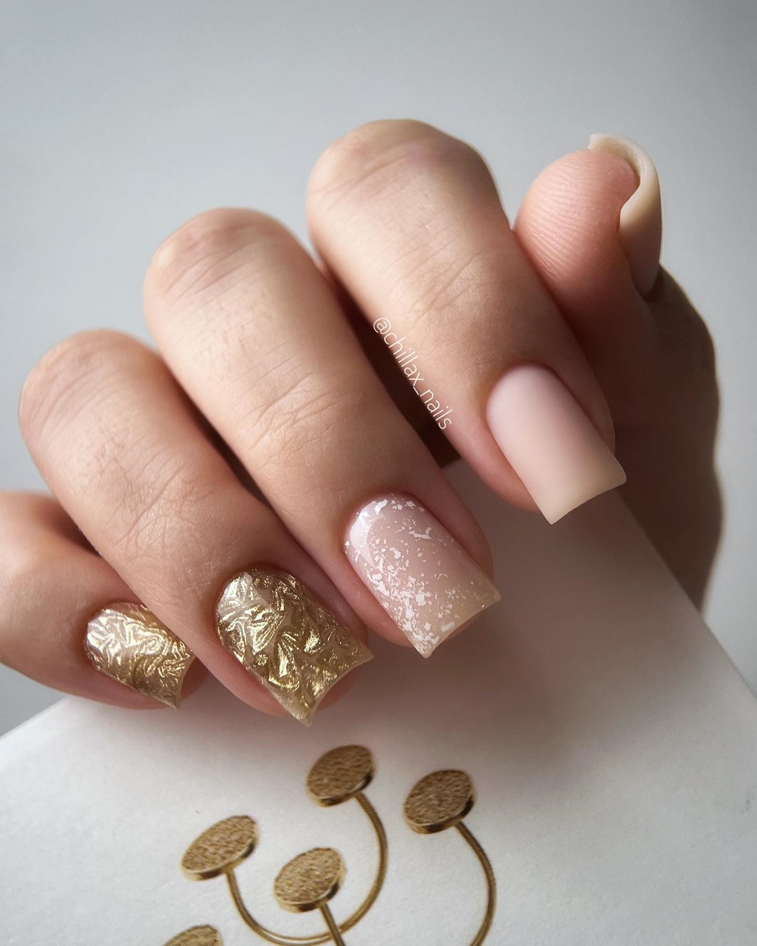 - Необычные текстуры. Матовые и глянцевые покрытия, бархатный эффект, гель-эффект с объемными каплями — сочетание разных фактур делает маникюр более выразительным.
