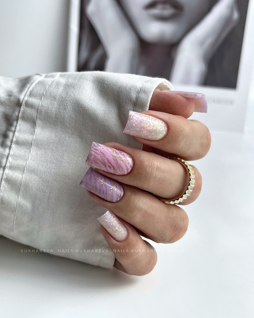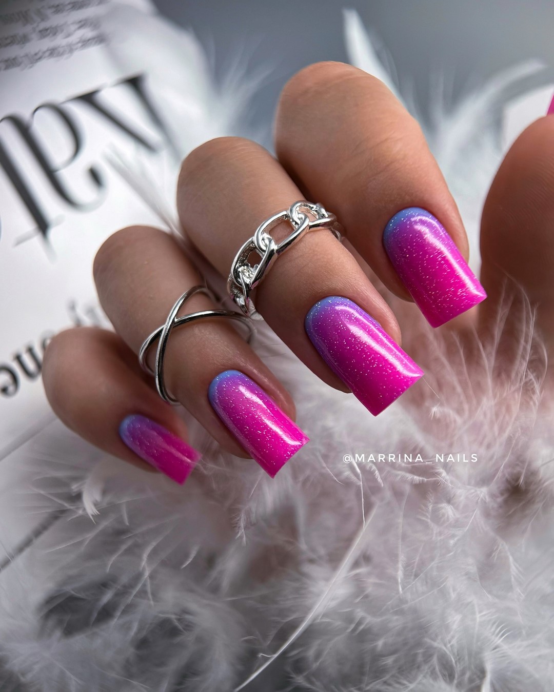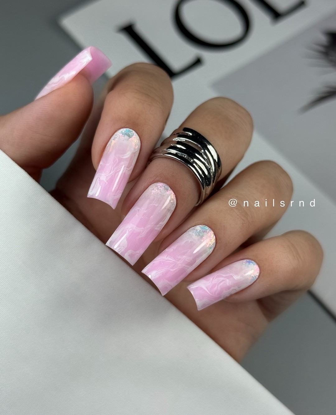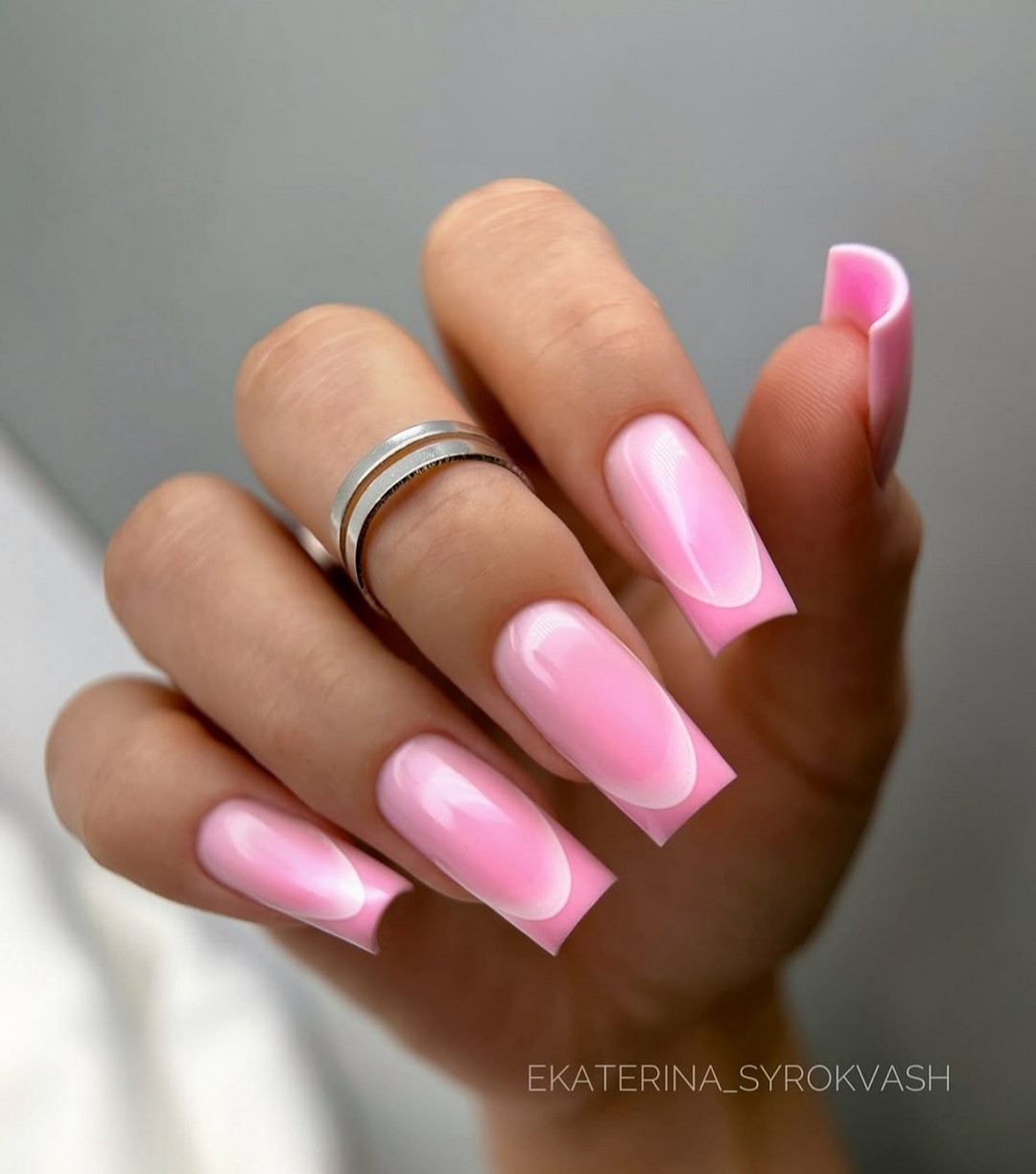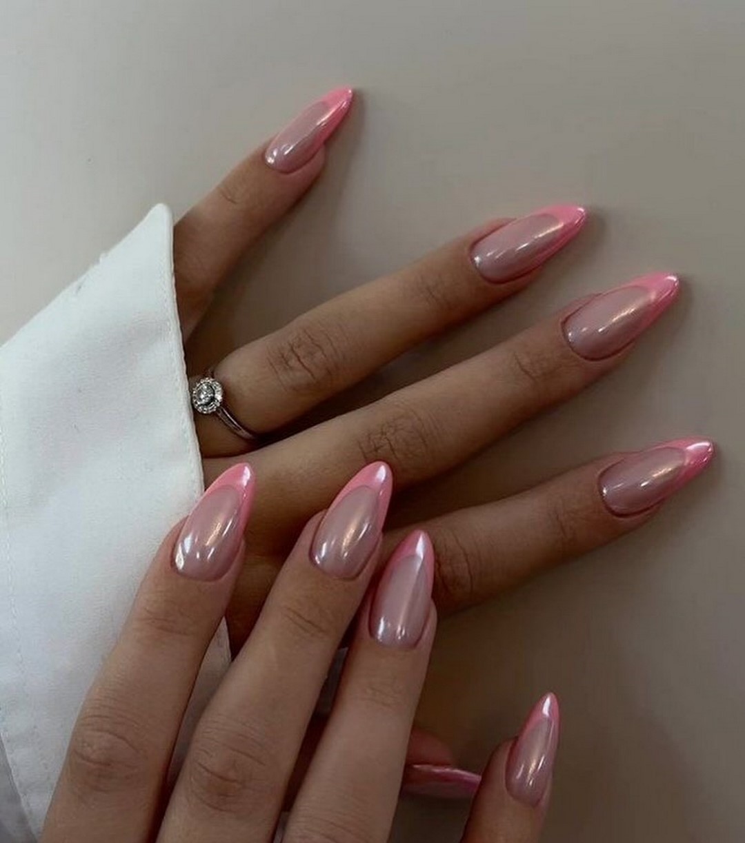 Втирка в сезоне весна-лето 2025 приобретает более мягкие и многогранные оттенки – от перламутрового сияния до голографических переливов. В моде розовый, голубой, золотистый и жемчужный эффекты, создающие деликатный блеск. Такой маникюр хорошо смотрится как на длинных, так и на коротких ногтях, придавая им визуальную гладкость и зеркальное сияние. Втирка может использоваться как на всех ногтях, так и точечно, например, для создания акцента на одном или двух пальцах.