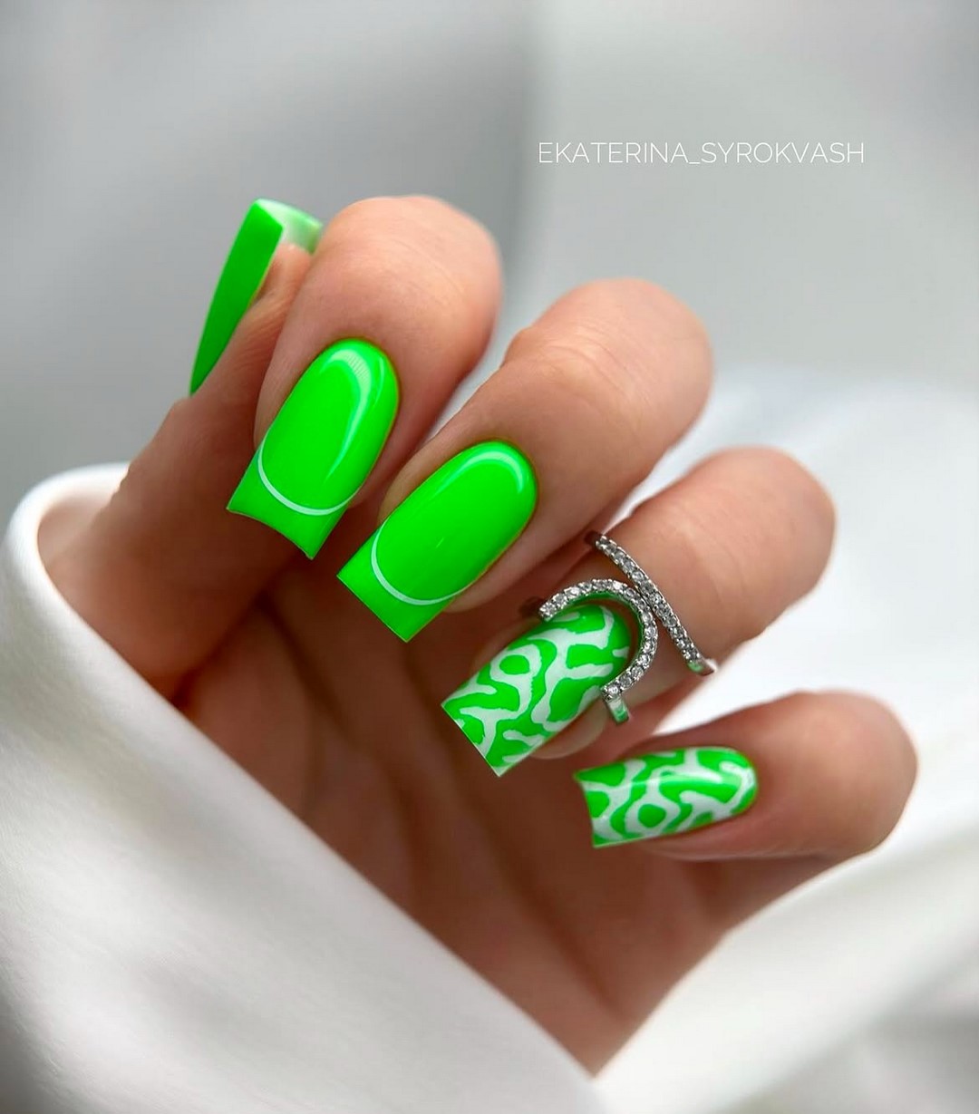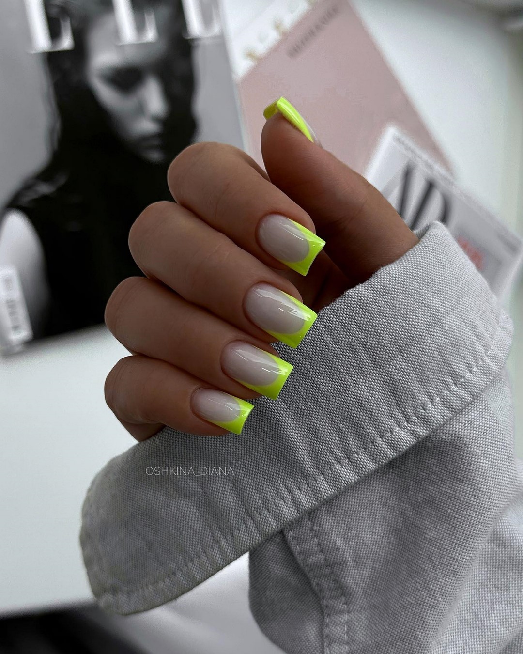 Летний сезон – время смелых решений, поэтому яркий маникюр остается в моде. В 2025 году актуальны неоновые и кислотные оттенки – лайм, оранжевый, малиновый, ультрамариновый. Особенно стильно выглядят яркие монохромные покрытия, а также цветные французские кончики и геометрические дизайны. Такой маникюр добавляет игривости образу и поднимает настроение.