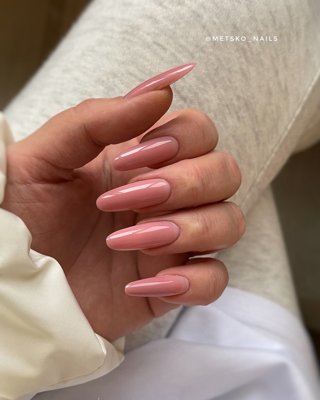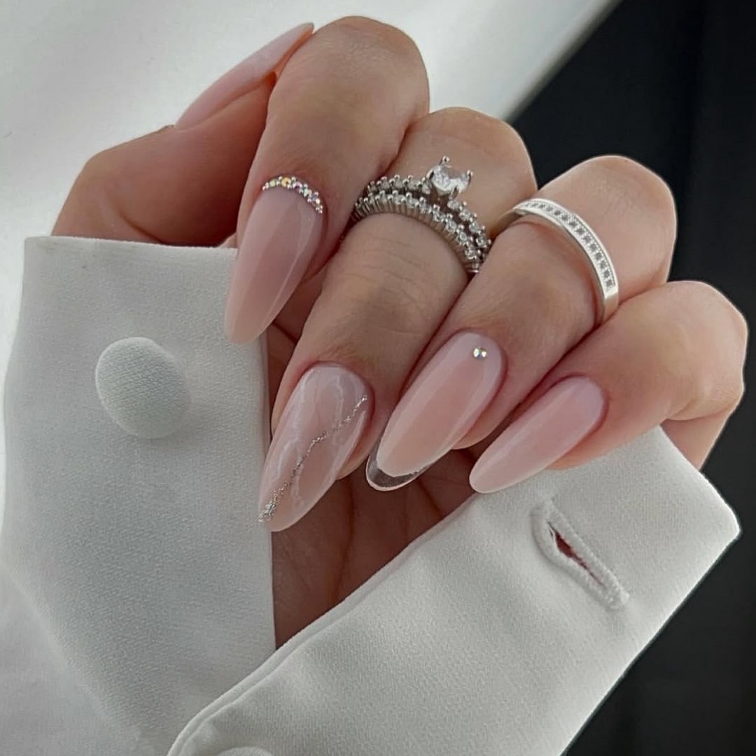Нюдовый маникюр остается классикой, придавая рукам ухоженный и естественный вид. Весной и летом 2025 в тренде полупрозрачные нюдовые покрытия, глянцевые и матовые текстуры, а также сочетание с минимальными декоративными элементами. Вариации включают молочный, персиковый, бежевый и розоватый нюд. Такой маникюр идеально подходит для любого случая и легко сочетается с разными стилями одежды.