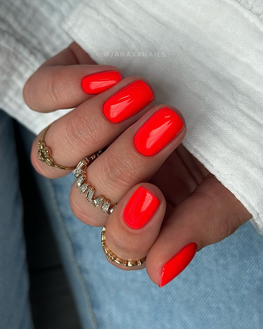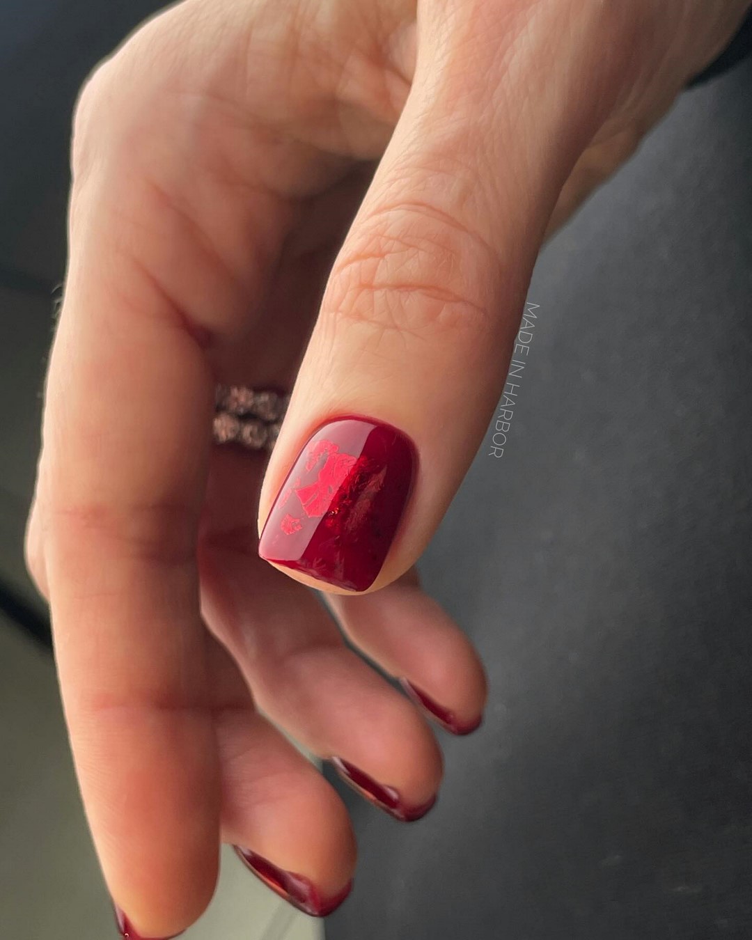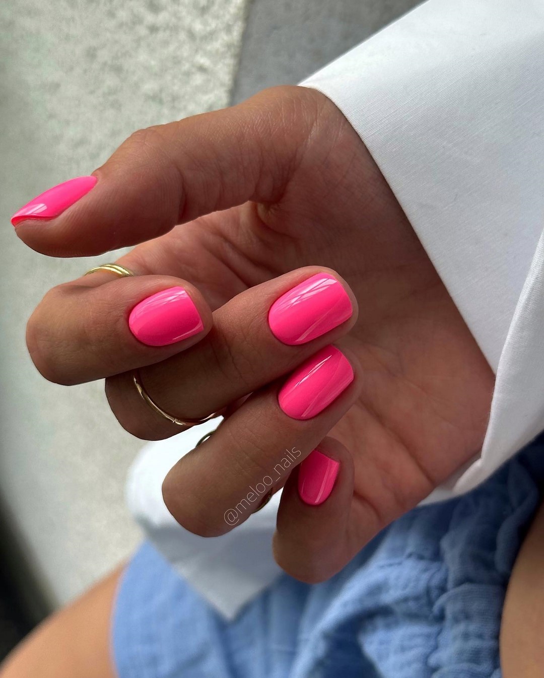 Глубокие и сочные оттенки также популярны в теплое время года, особенно в формате монохромного покрытия. В тренде красный, винный, изумрудный, кобальтовый, фуксия и солнечно-желтый цвета. Насыщенный маникюр может быть дополнен матовым топом или минимальными декоративными элементами. Такой стиль выглядит эффектно и подходит как для повседневных, так и для вечерних образов.