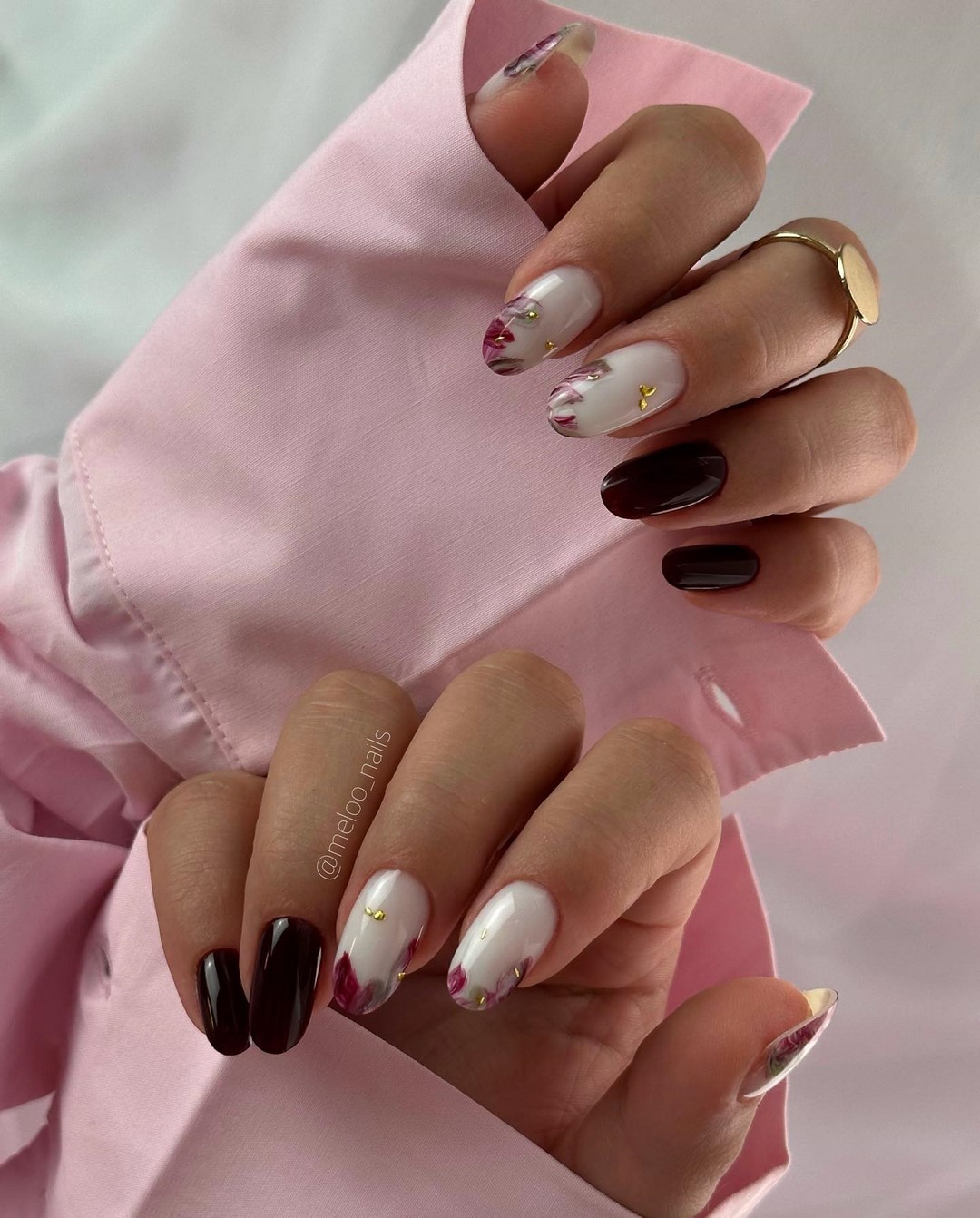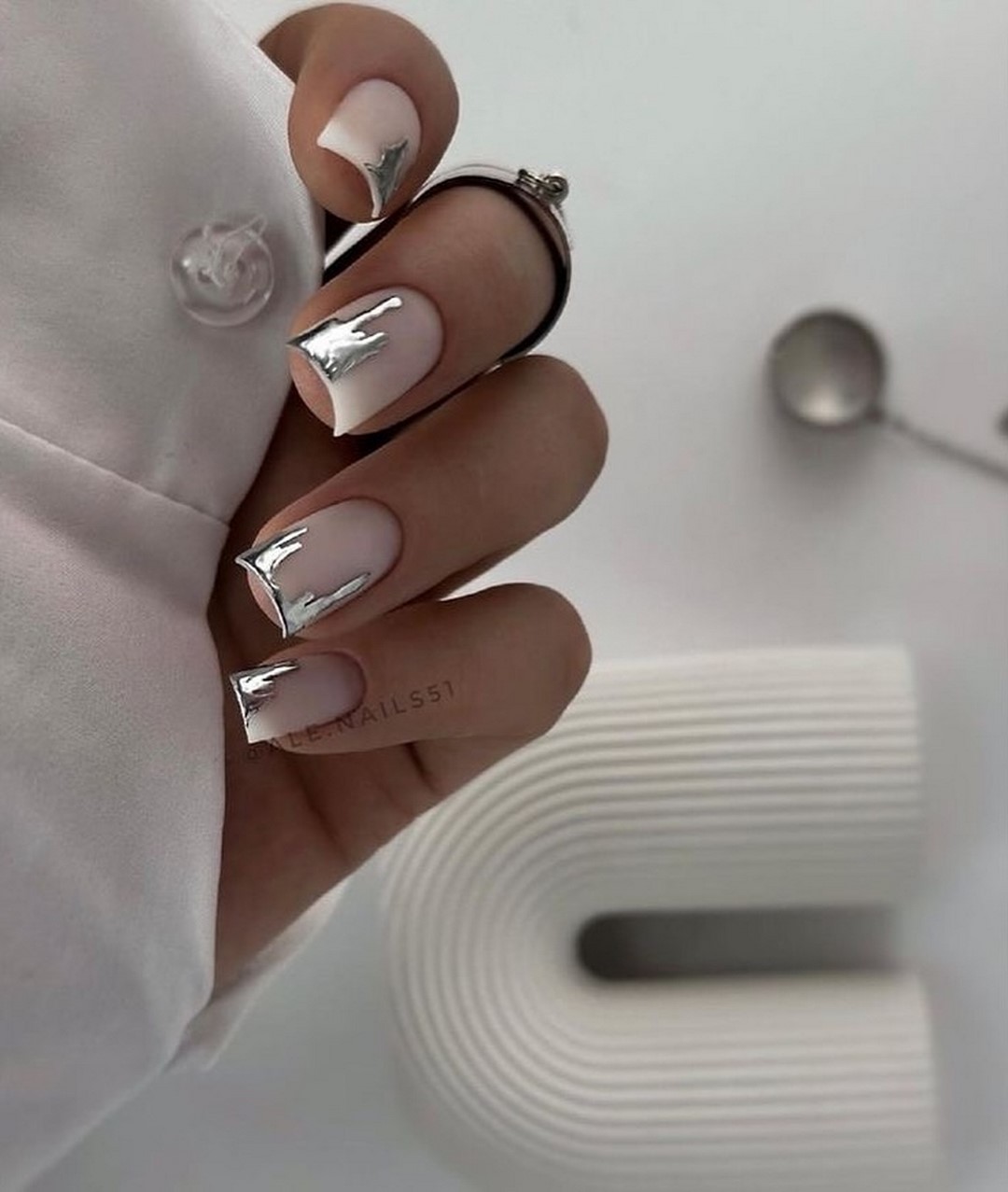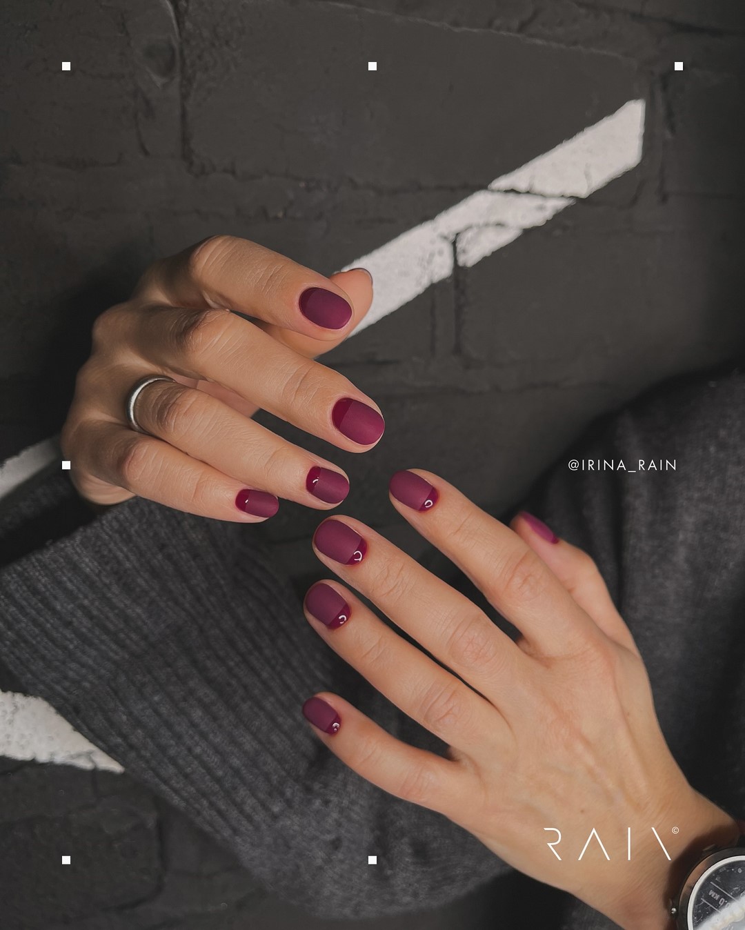 Комбинация матового и глянцевого покрытия – тренд, который добавляет текстурный контраст. В моде французский маникюр с глянцевыми кончиками на матовом фоне, глянцевые узоры на матовой основе, а также геометрические и абстрактные сочетания. Такой маникюр выглядит элегантно и оригинально, особенно в темных и глубоких оттенках.