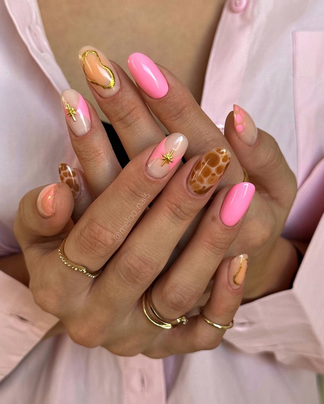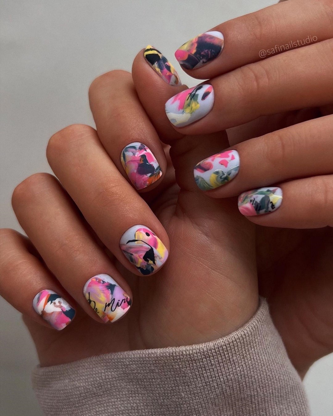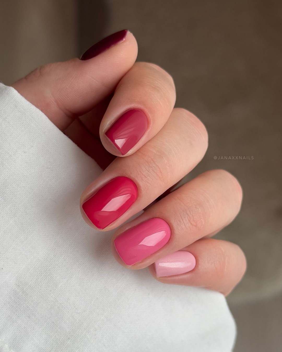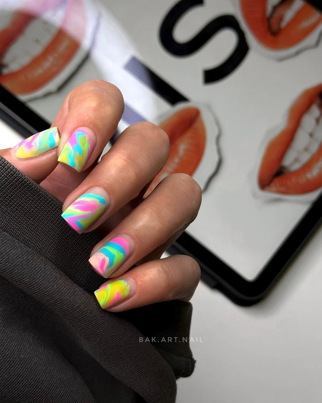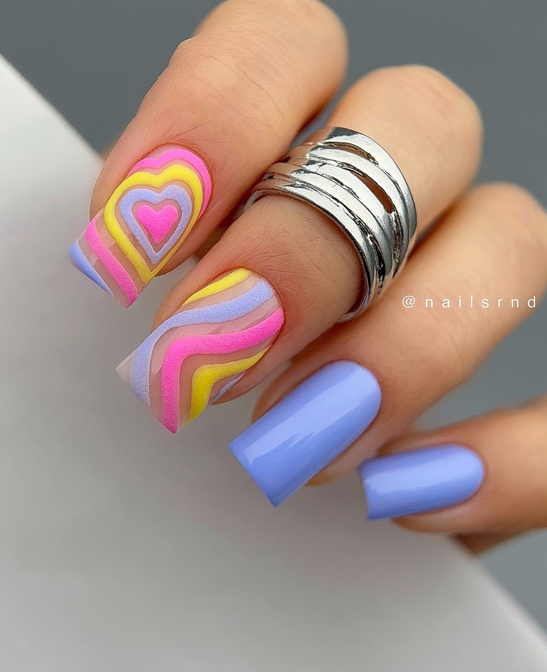 Разноцветный маникюр – идеальный вариант для теплого сезона, позволяющий экспериментировать с палитрой. В 2025 году тренд на сочетание нескольких ярких оттенков на одной руке или на отдельных ногтях сохраняется. Особенно популярны мягкие градиенты, эффект «разного лака» на каждом пальце и комбинации контрастных цветов. Разноцветный маникюр отлично подходит для летних образов и подчеркивает индивидуальность.
