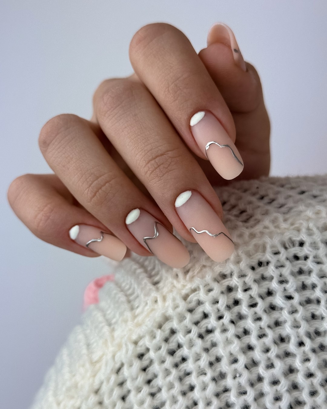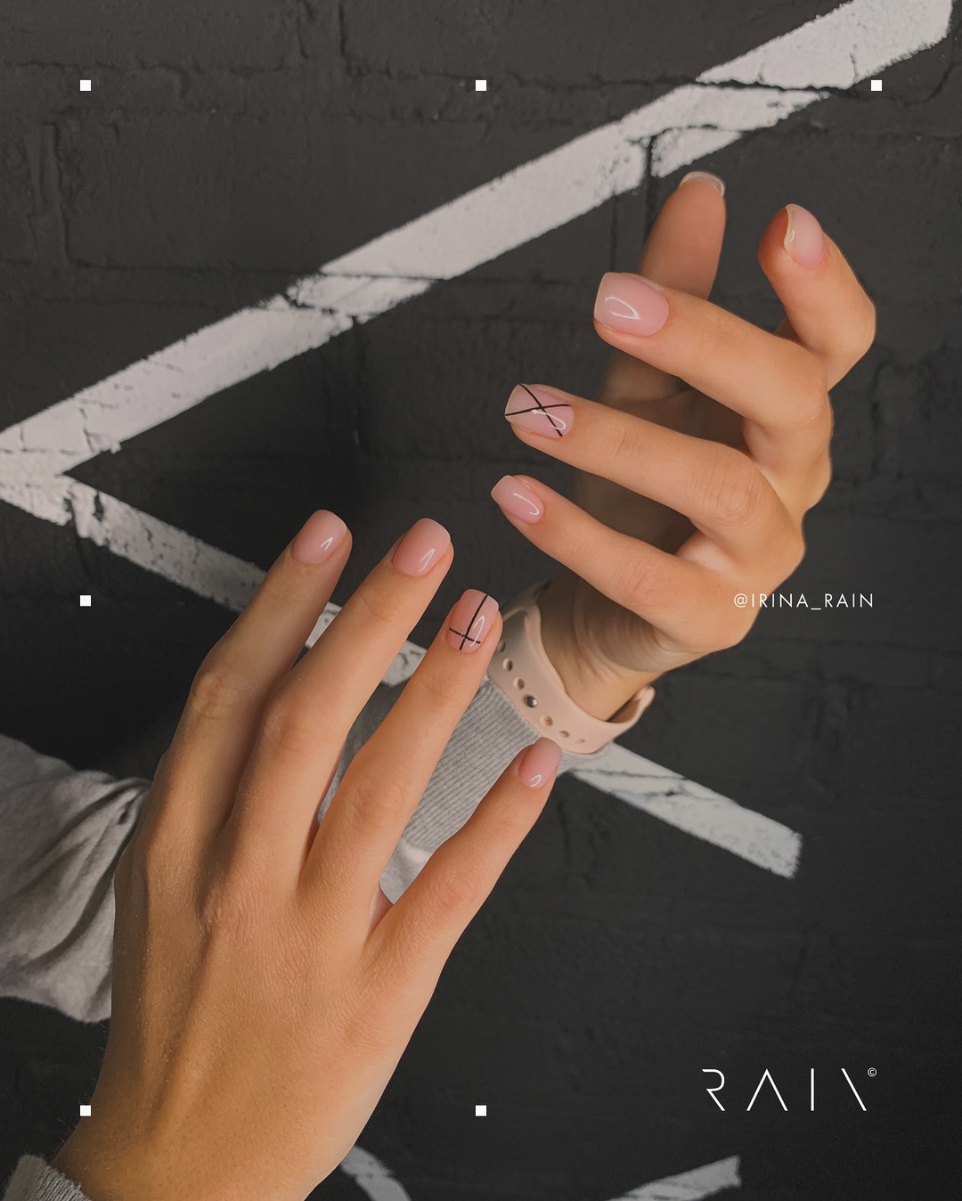 Минималистичный маникюр остается стильным решением для тех, кто предпочитает сдержанность. В тренде тонкие графичные линии, мелкие точки, прозрачные покрытия и нюдовые оттенки. Часто используются аккуратные негативные пространства, простые узоры и тонкие металлизированные акценты. Такой маникюр выглядит свежо и элегантно, подходя как для офиса, так и для повседневной носки.