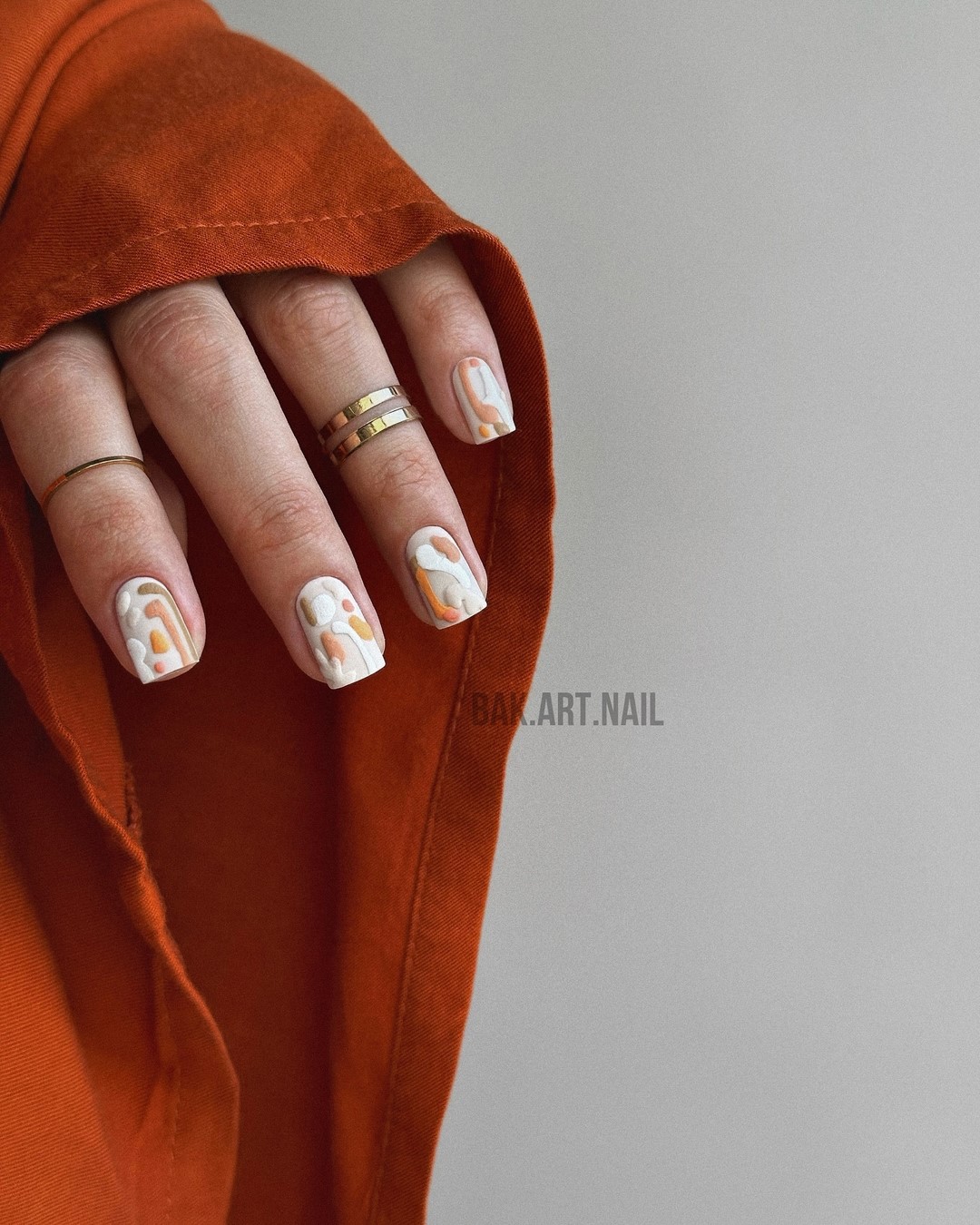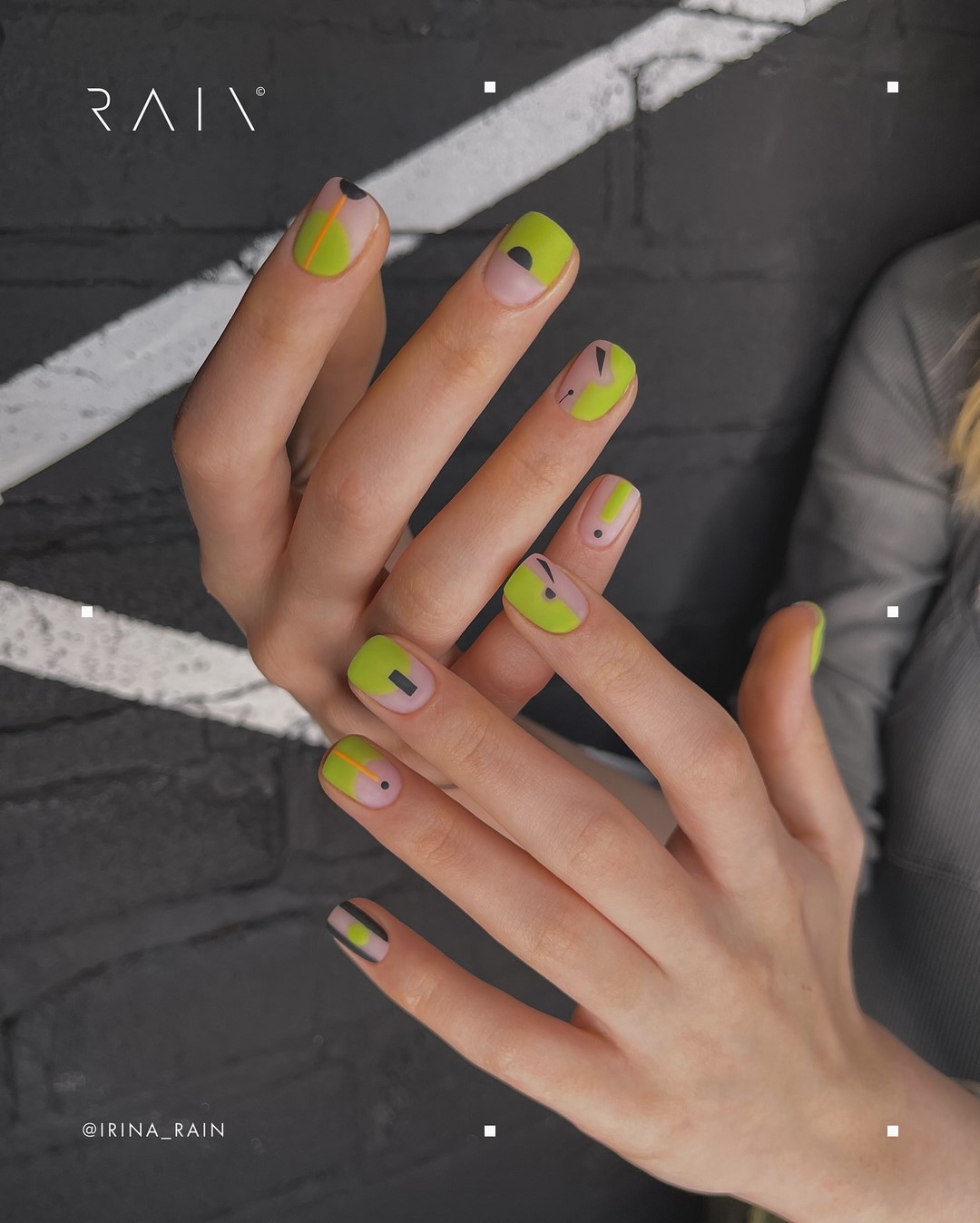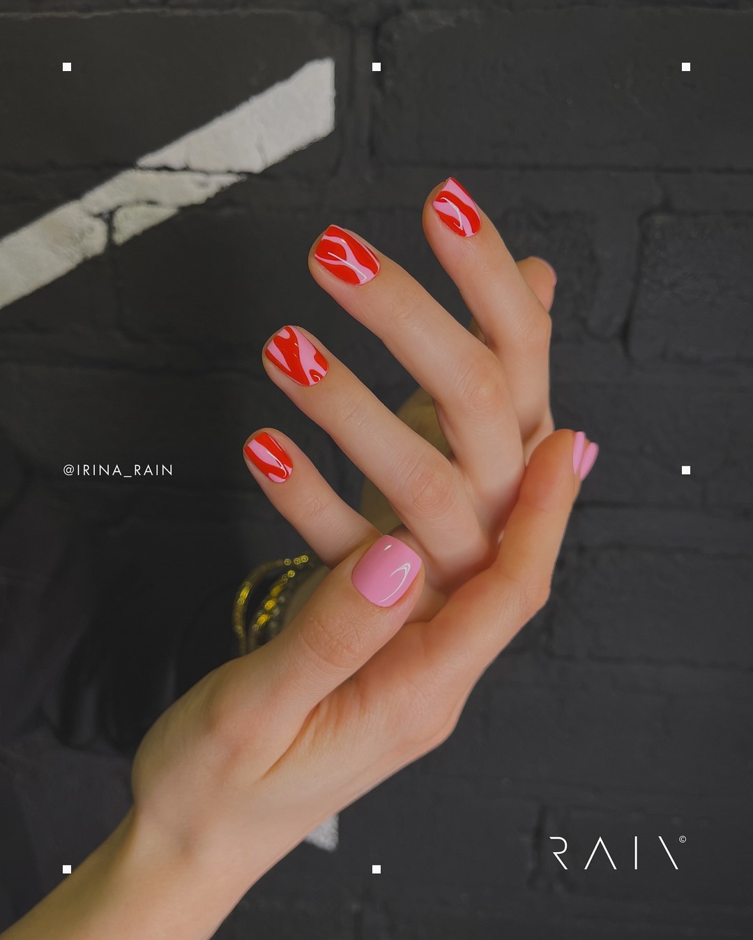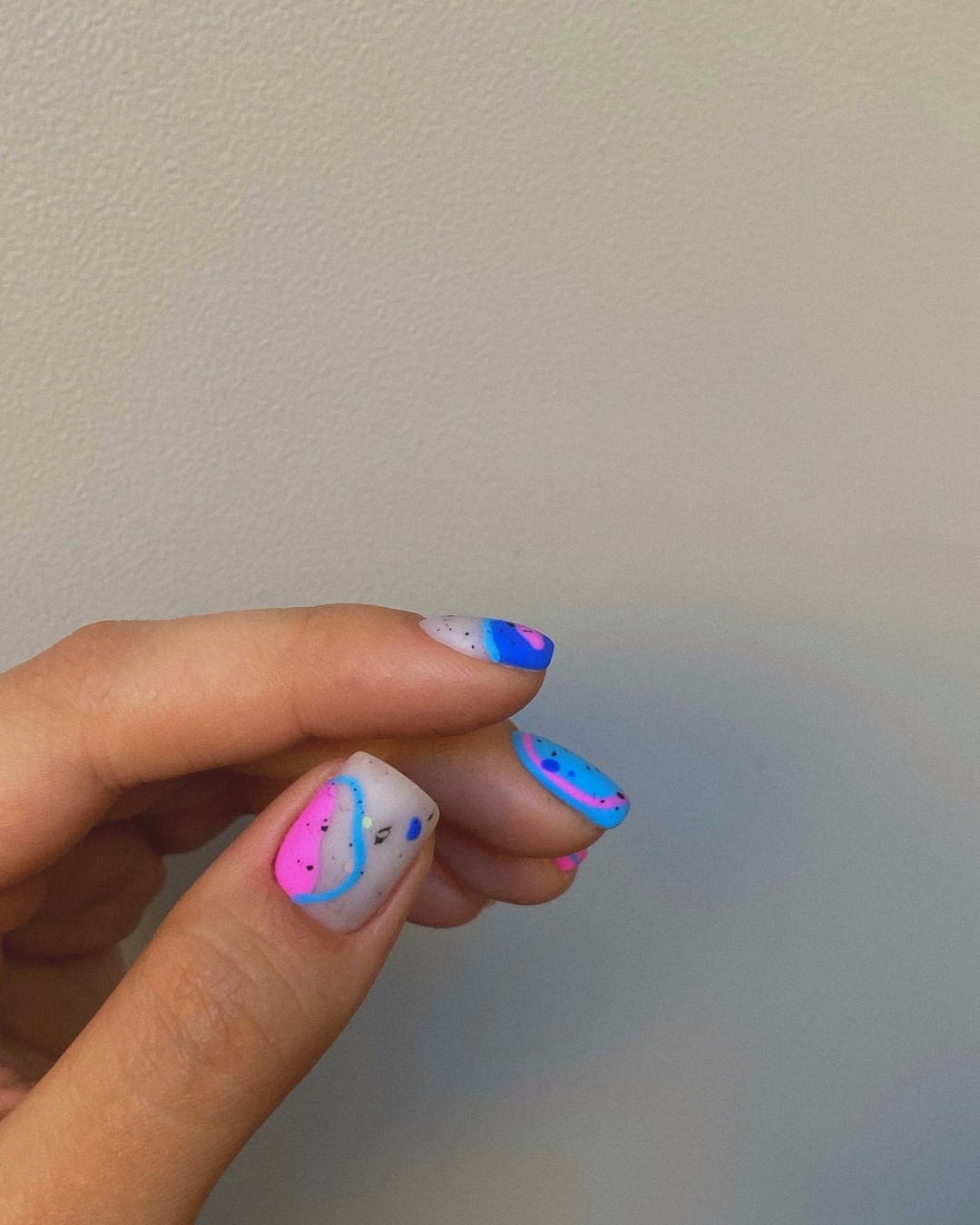Абстрактный дизайн – это сочетание хаотичных линий, разноцветных мазков и нестандартных узоров. В 2025 году популярны художественные композиции с сочетанием ярких и пастельных оттенков, а также минималистичные черно-белые графические элементы. Абстрактный маникюр позволяет экспериментировать и создавать уникальные дизайны. Особенно интересно он смотрится на ногтях разной длины.