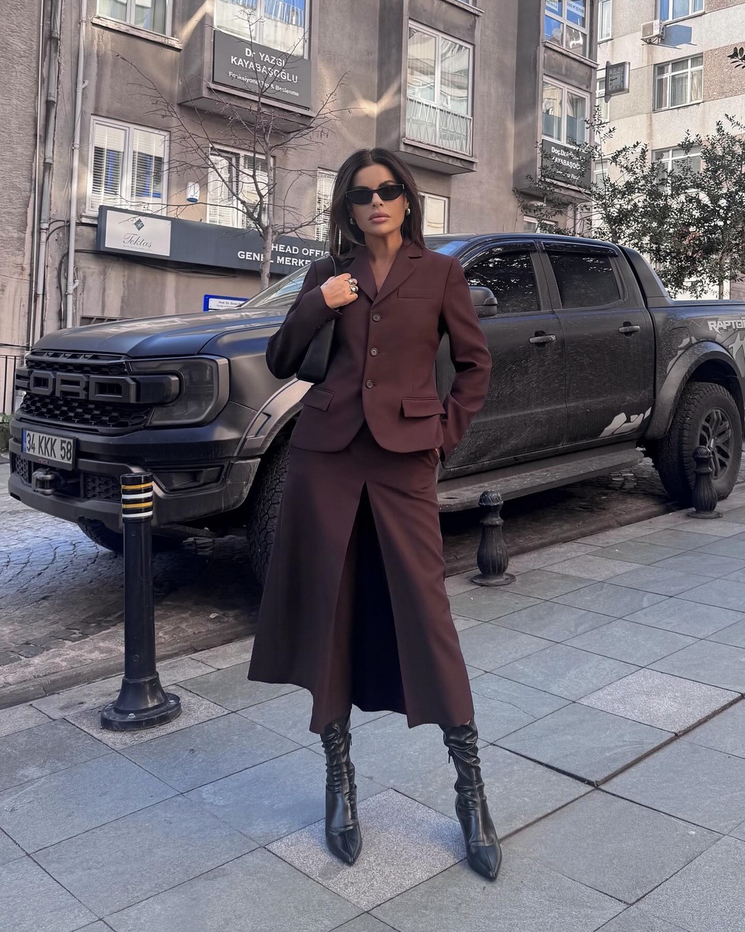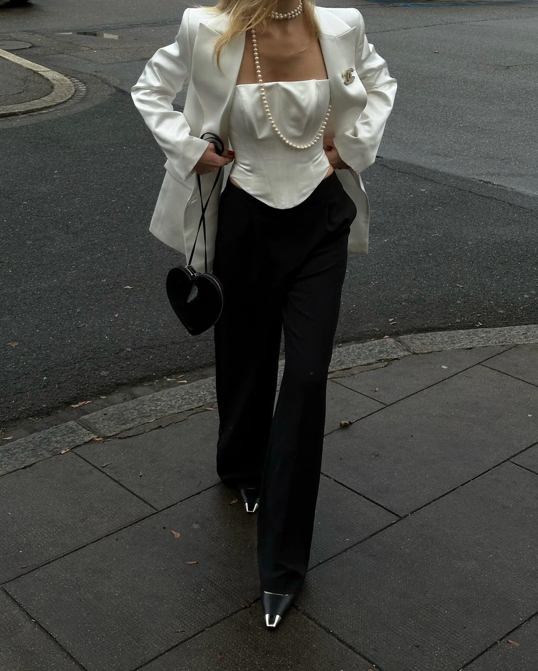- Укороченные пиджаки и жилеты в комбинации с широкими брюками или юбками макси.