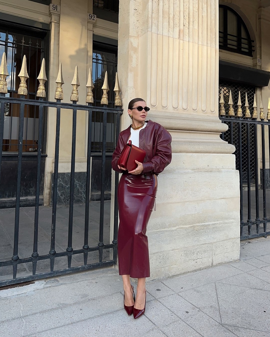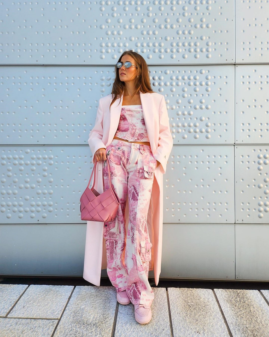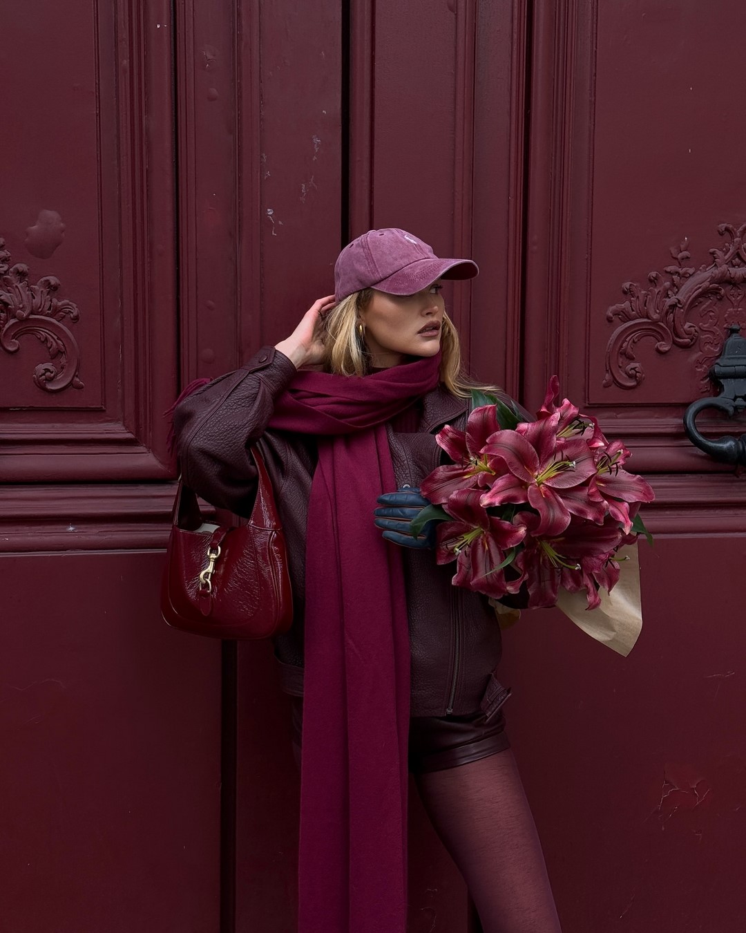 Образы в одном цвете остаются актуальными, особенно в мягких пастельных и глубоких насыщенных оттенках. Белый, черный, бежевый, серый и яркие акцентные цвета (красный, синий, зеленый) формируют стильные тотал-луки. Дизайнеры предлагают играть с текстурами и материалами, сочетая, например, кожу и трикотаж в одном оттенке. Такой прием делает образ цельным и элегантным, а также визуально стройнит силуэт.