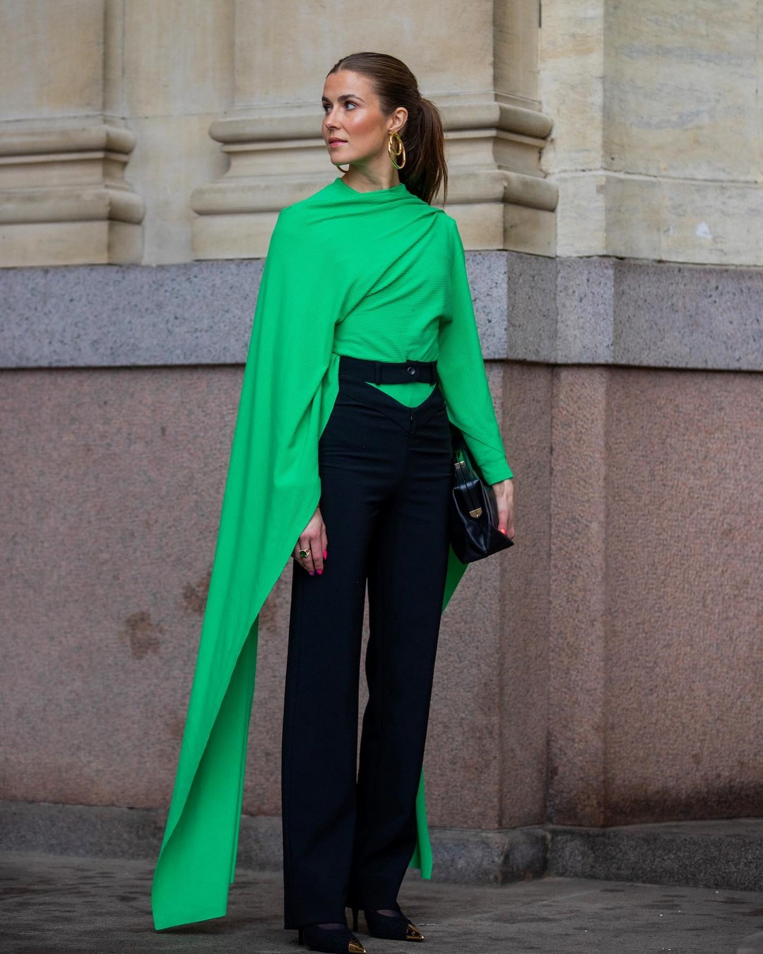 Блузы, платья и жакеты с выразительными объемными деталями делают силуэт эффектным и запоминающимся. Популярны пышные рукава, крупные оборки, драпировки и многослойные конструкции. Дизайнеры играют с формами, создавая воздушные и скульптурные образы, которые подходят как для вечерних, так и для повседневных выходов. Такой стиль добавляет драматичности и подчеркивает индивидуальность.