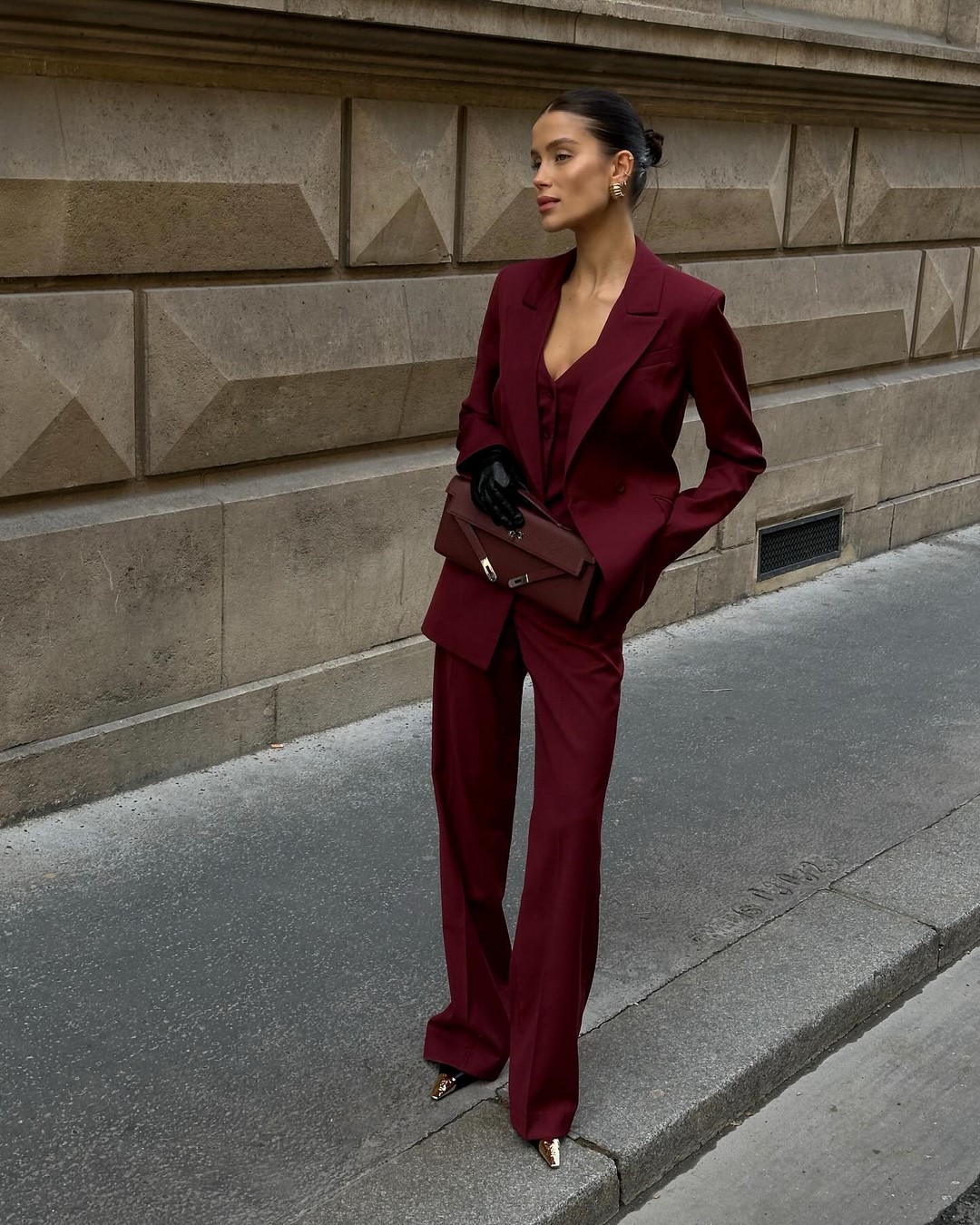 Приталенные силуэты возвращаются в моду, подчеркивая женственность и элегантность. Дизайнеры представляют жакеты, платья и комбинезоны с акцентом на талию с помощью ремней, басок и корсетных вставок. Такой крой создает утонченный и изысканный образ, идеально подходящий как для офиса, так и для вечерних выходов. Популярны как классические формы, так и экспериментальные конструкции с асимметрией и драпировкой.