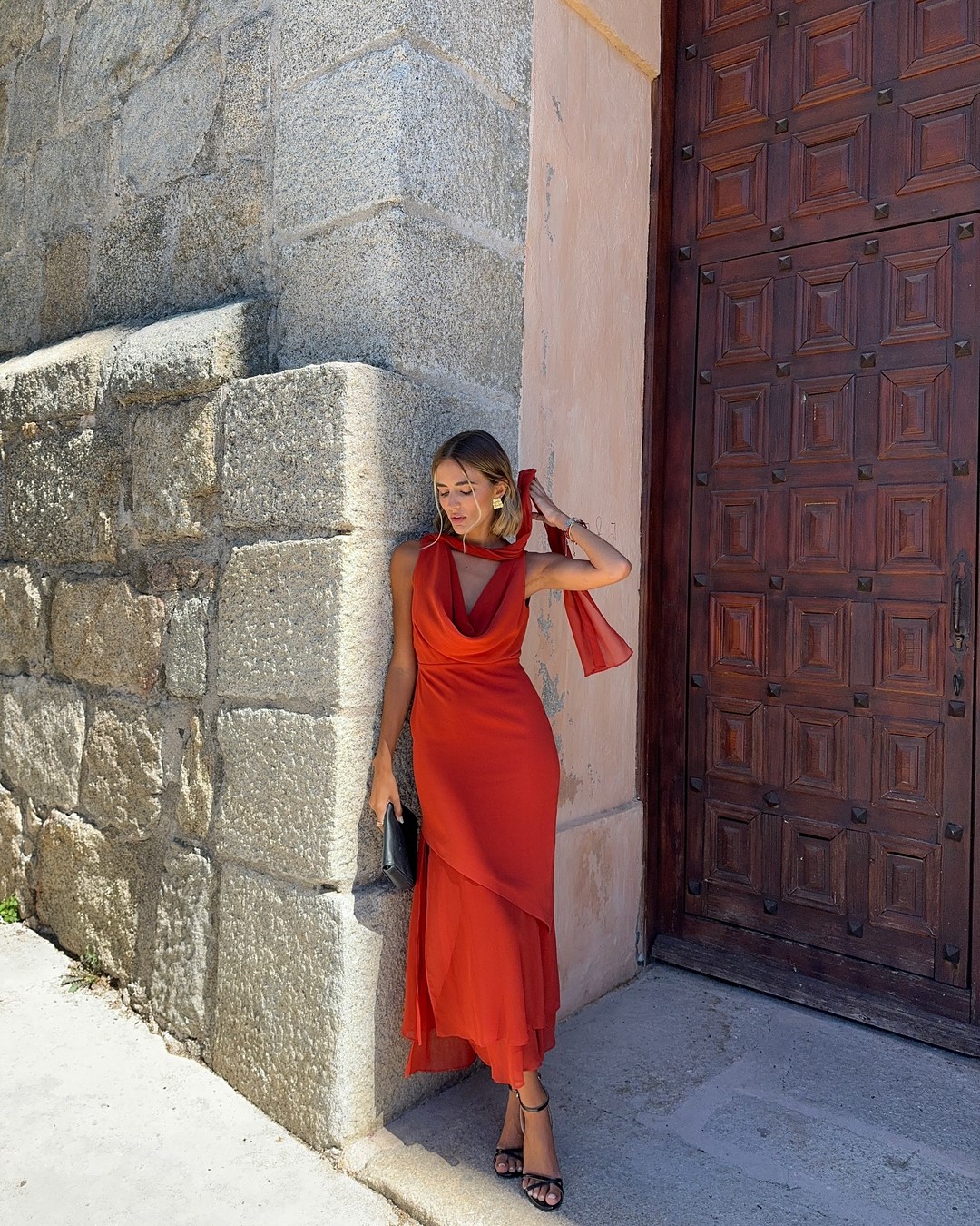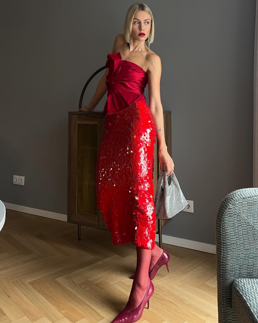 - Комбинезоны и платья с необычными силуэтами, придающие наряду оригинальность.