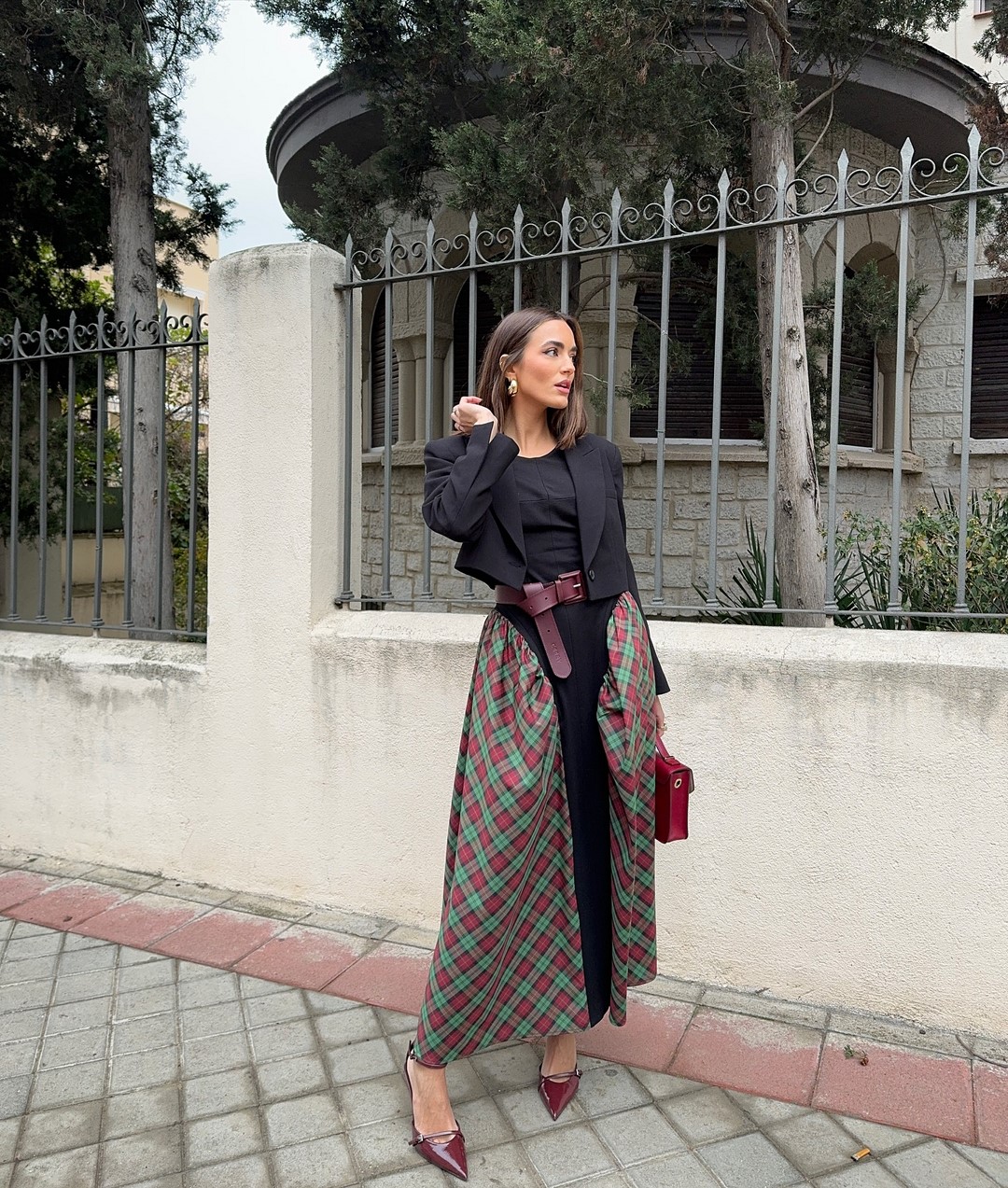 Клетчатый принт продолжает занимать лидирующие позиции, появляясь в новых вариациях и неожиданных цветовых решениях. В сезоне весна-лето 2025 особенно популярны пастельная клетка, яркие контрастные сочетания и асимметричные узоры. В тренде как классическая гленчек и тартан, так и более экспериментальные версии в стиле color-block. Клетка используется на костюмах, юбках, платьях и даже аксессуарах, добавляя образу графичность.