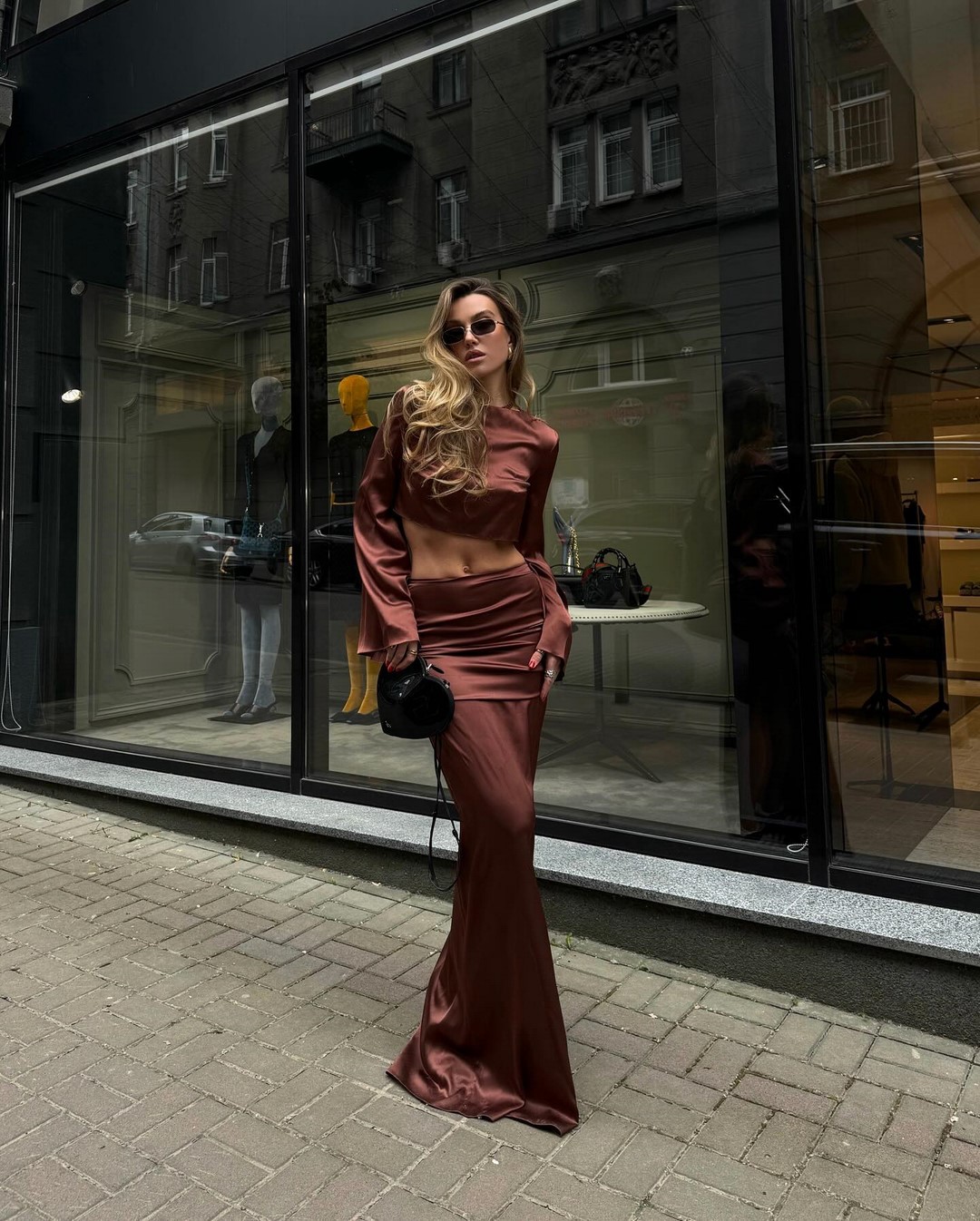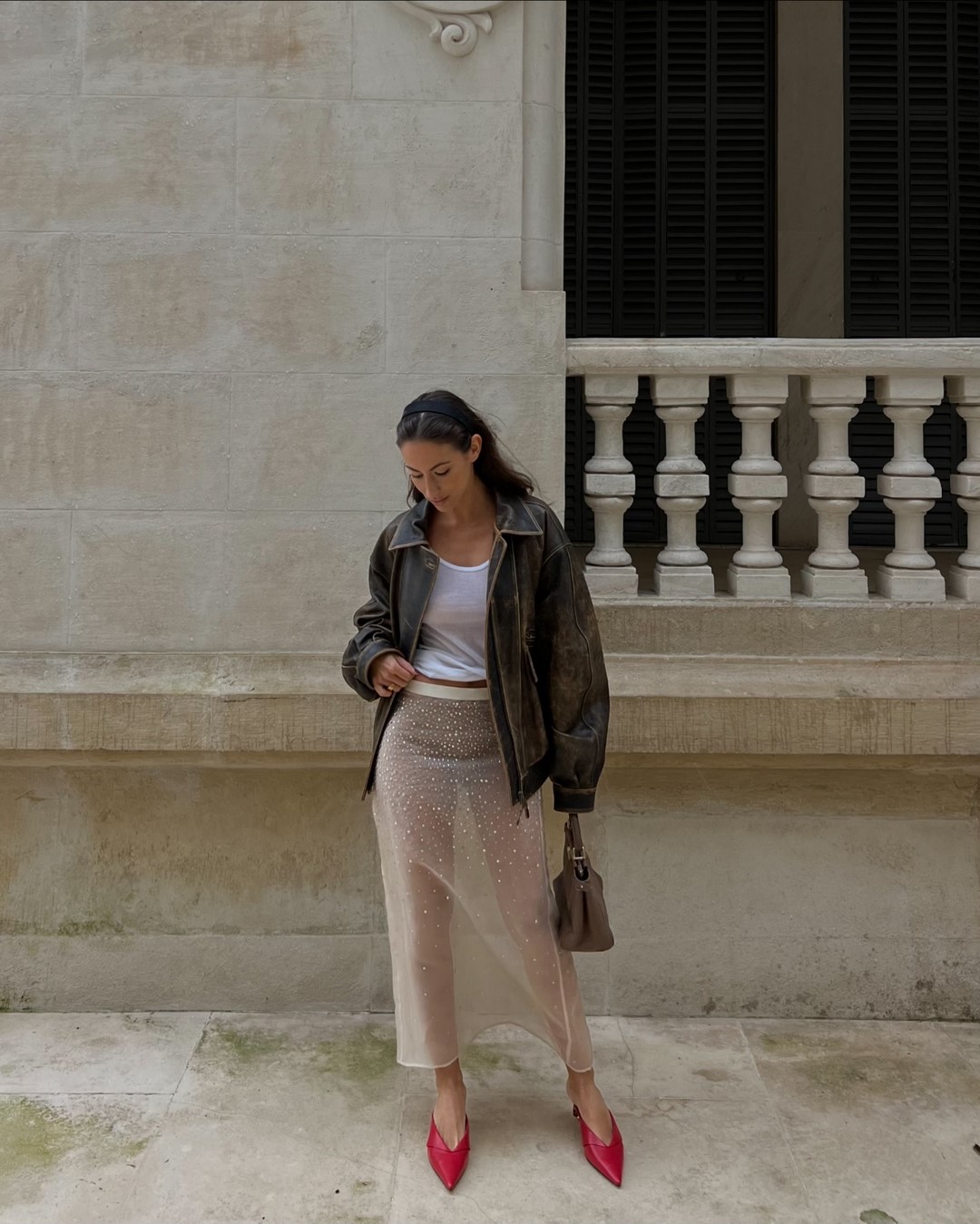 Полупрозрачные ткани остаются в центре внимания, добавляя загадочность и сексуальность образам. В тренде органза, тюль, сетка и тонкий шифон, которые используются в платьях, юбках, блузах и даже верхней одежде. Дизайнеры предлагают сочетать прозрачные вещи с более плотными элементами – жакетами, топами и бельевым стилем. Такой прием позволяет создавать многослойные и интересные образы без излишней откровенности.