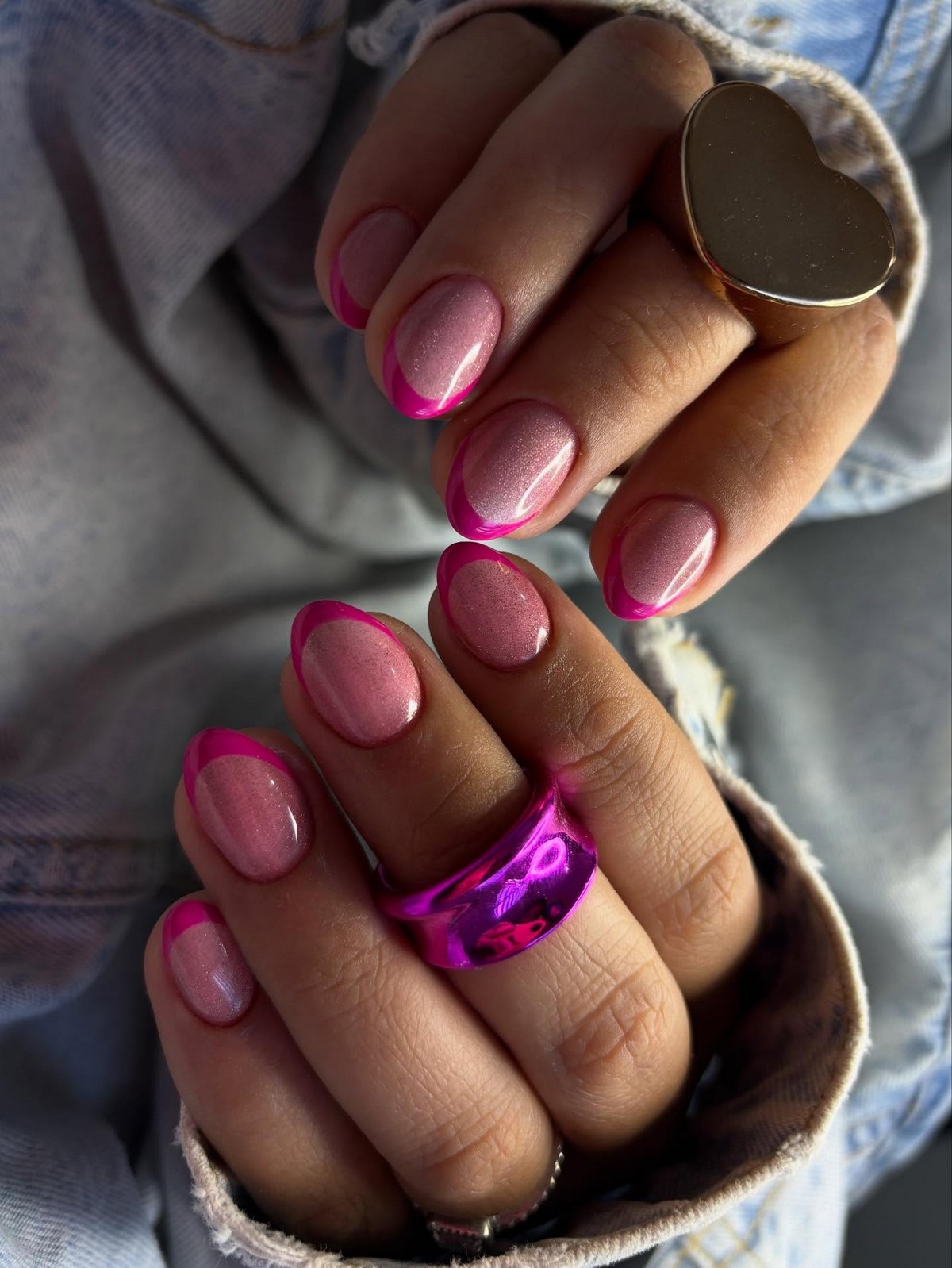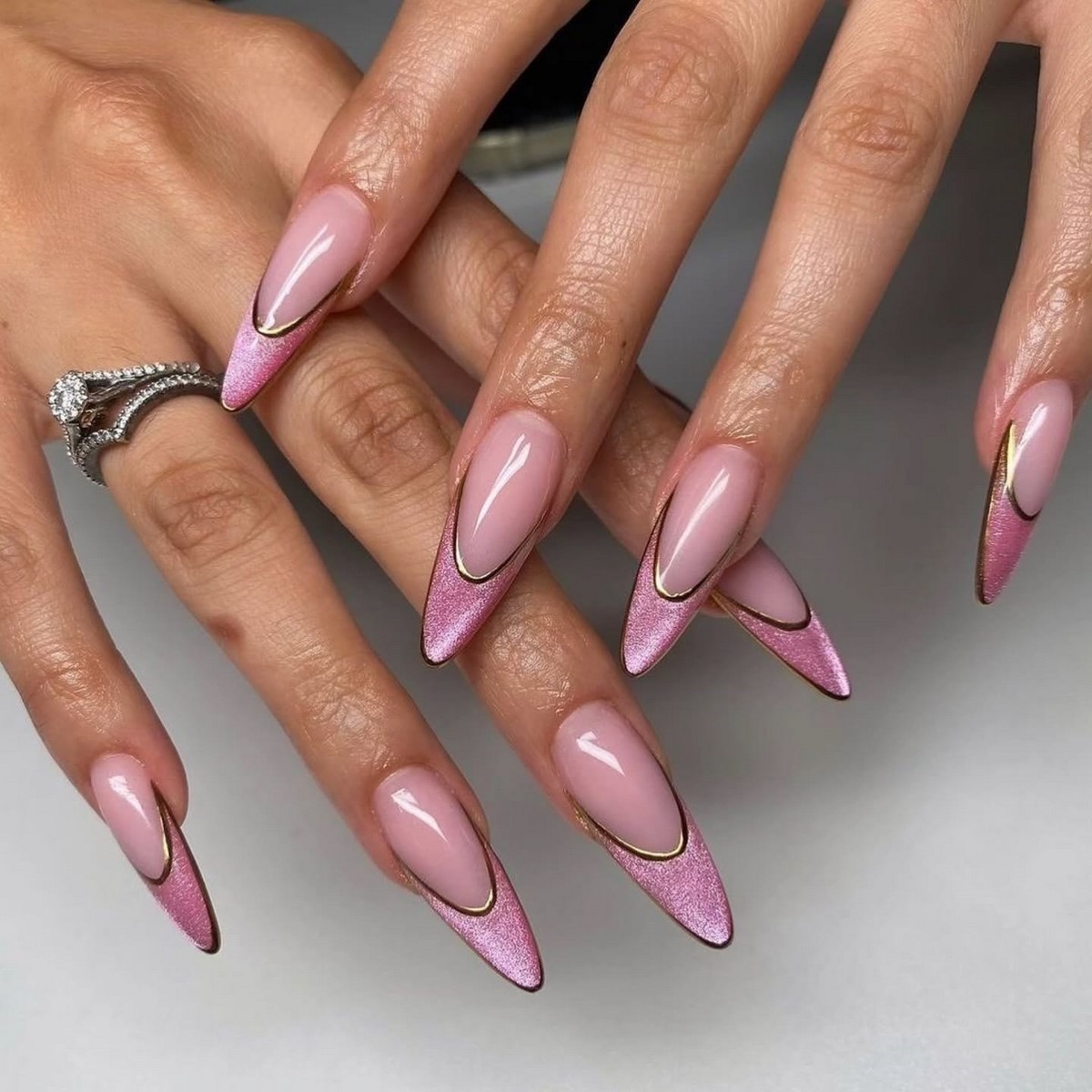 Розовый кошачий глаз идеально подходит для зимнего сезона, так как смотрится мягко и утонченно. Такой френч гармонично дополняет вечерние образы и при этом остается уместным в повседневной жизни.