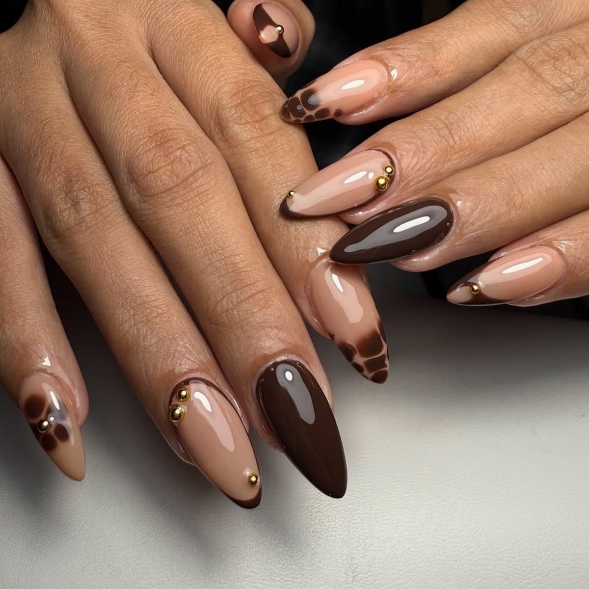 Шоколадные оттенки в цветном френче выглядят тепло и благородно. В феврале особенно актуальны молочный шоколад, карамель и какао, которые создают уютное и стильное впечатление.