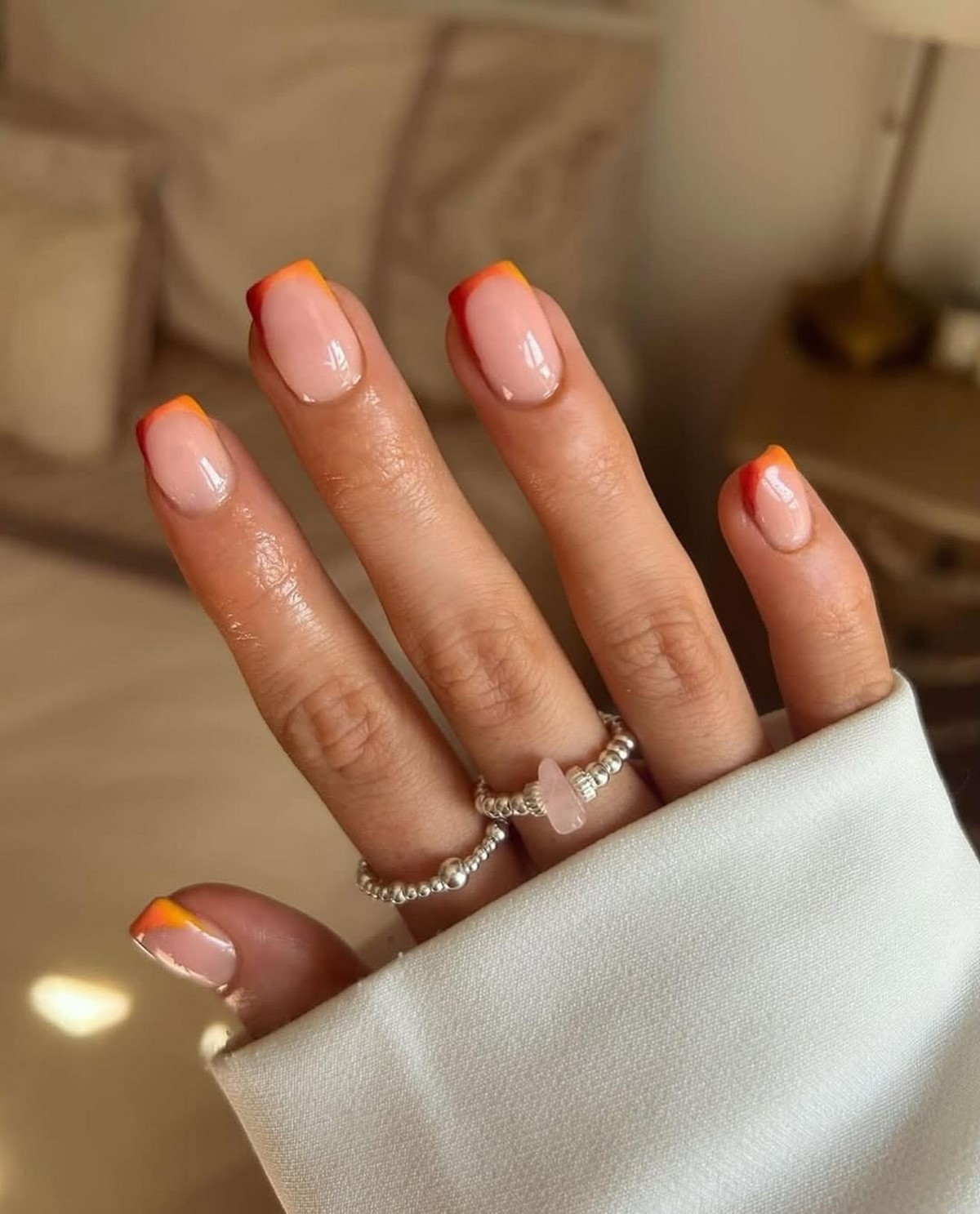 РЕКОМЕНДУЕМ | Градиентный цветной френч лучше всего выполнять в одном цвете с переходом от светлого к более насыщенному оттенку. Это делает дизайн визуально дороже и аккуратнее.