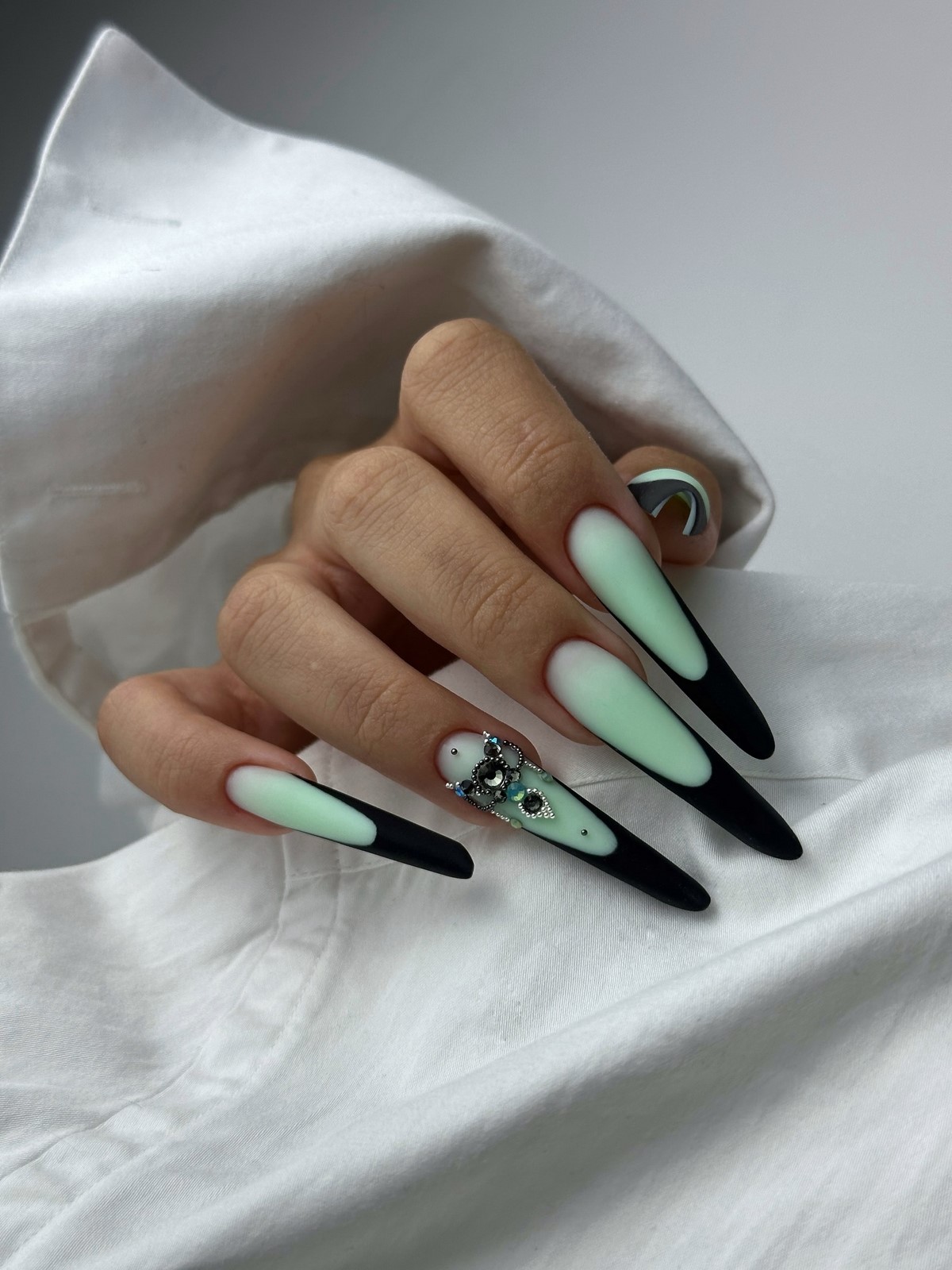 Такой дизайн смотрится свежо и необычно, особенно на коротких и средних ногтях. Он отлично вписывается в повседневный стиль и добавляет образу нотку креативности без излишней яркости.