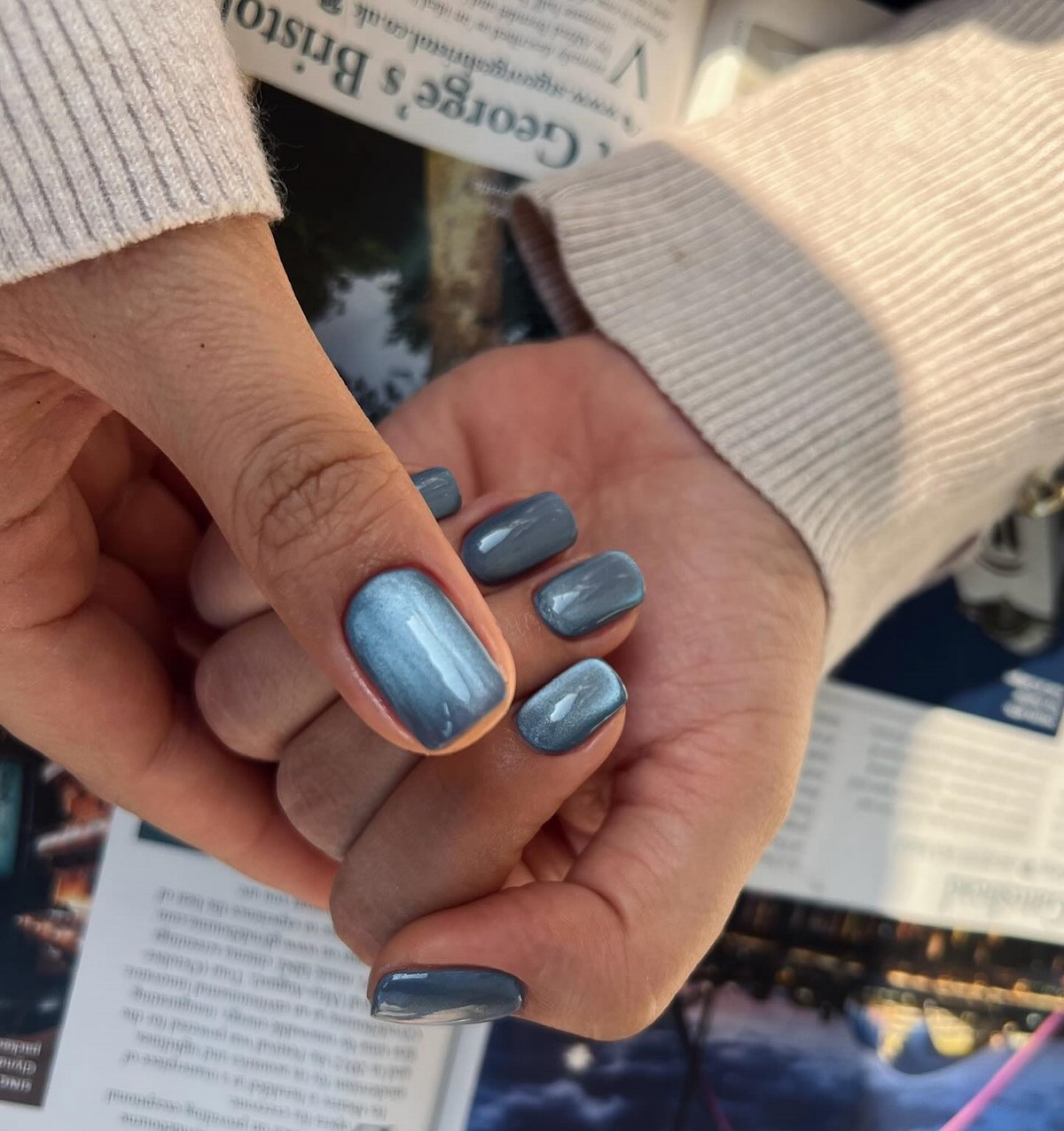 Особенно популярны оттенки холодного бежа, серо-розового, дымчатого лилового и жемчужного серого. Они создают эффект глубины, но не утяжеляют образ, что важно для повседневного зимнего маникюра.